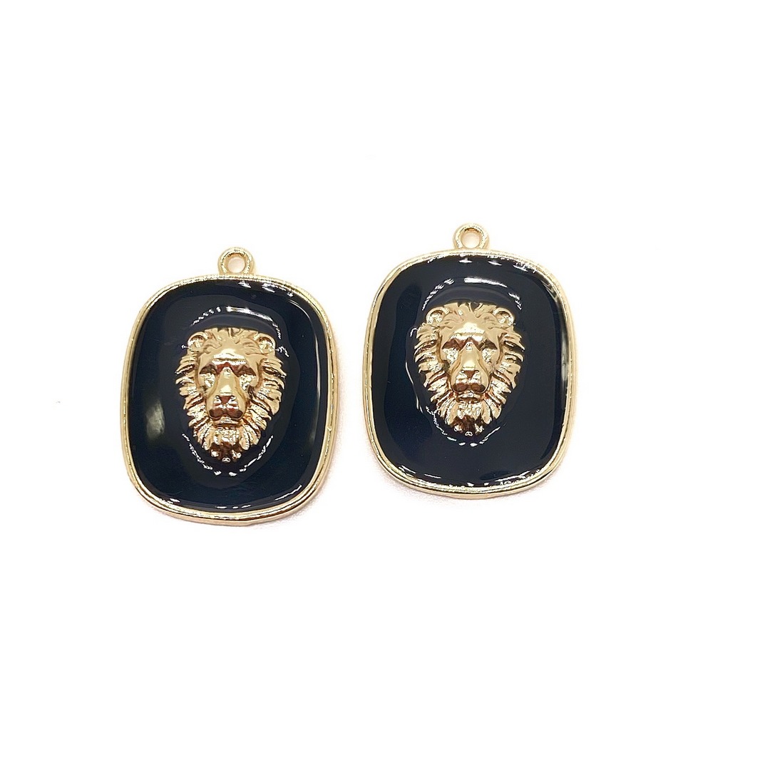 Подвеска лев квадрат черная эмаль 22х16 мм
