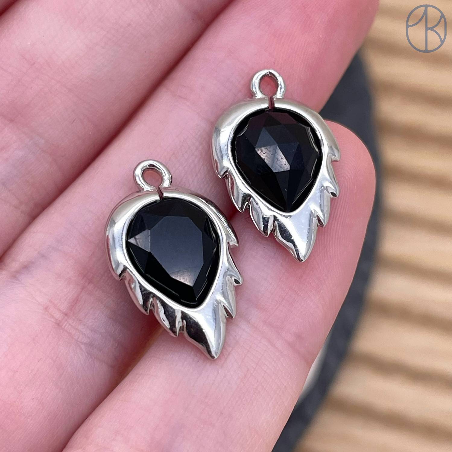 Подвеска лист огранка агат черный, цвет серебро 18 мм