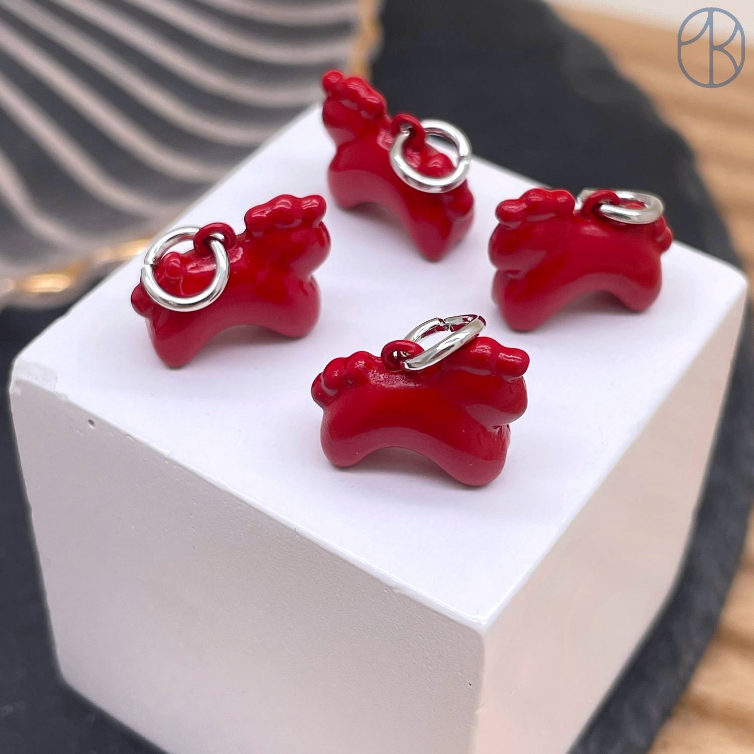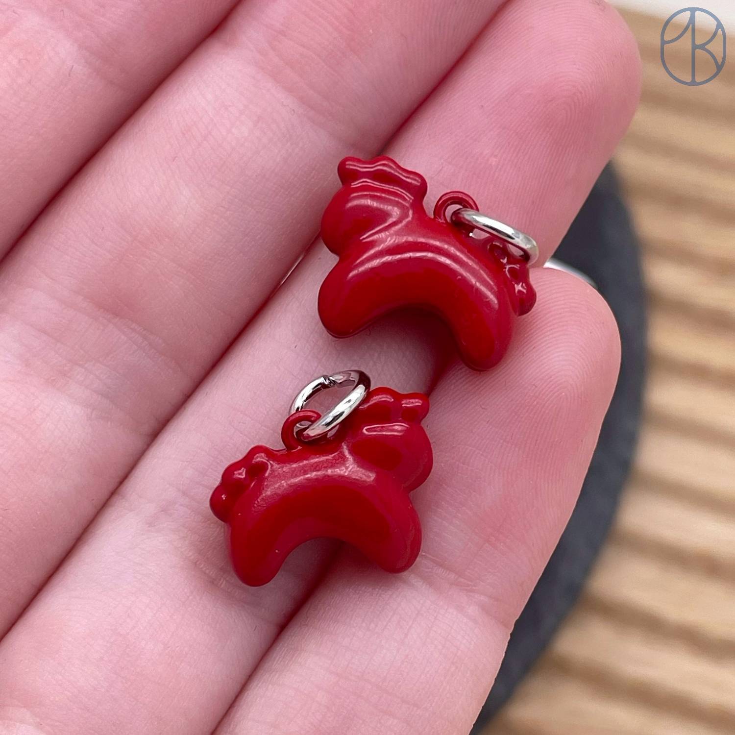 Подвеска лошадь красная эмаль, цвет серебро 12 мм