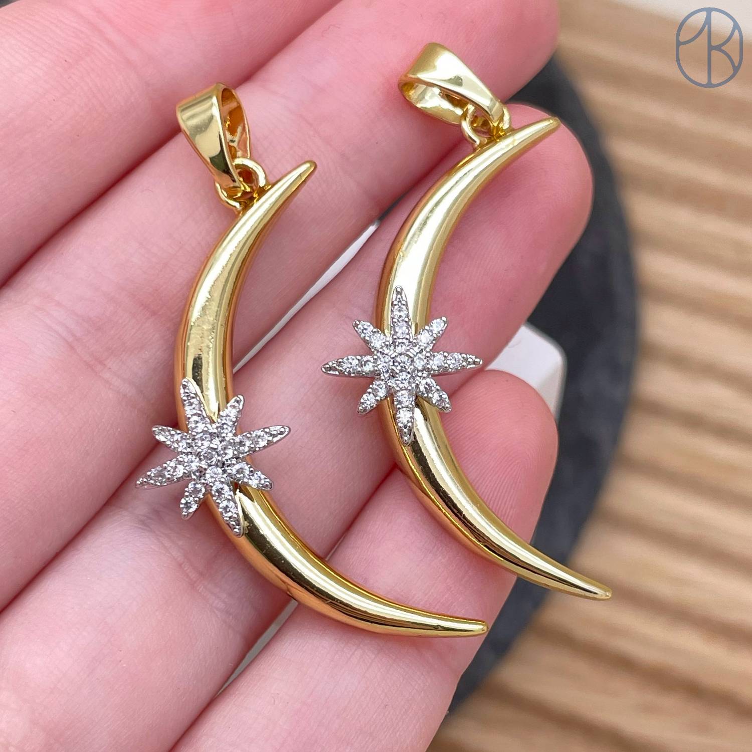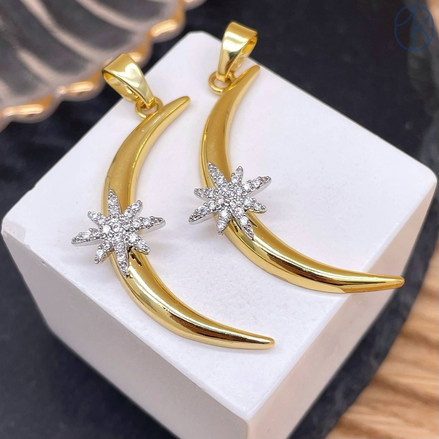 Подвеска луна и звезда, цвет золото 34 мм