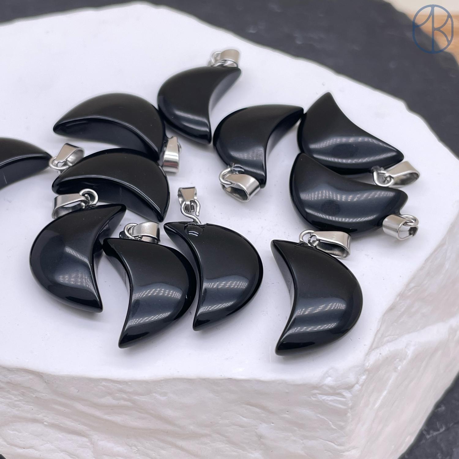 Подвеска луна (полумесяц) Агат черный, цвет серебро 19х11 мм