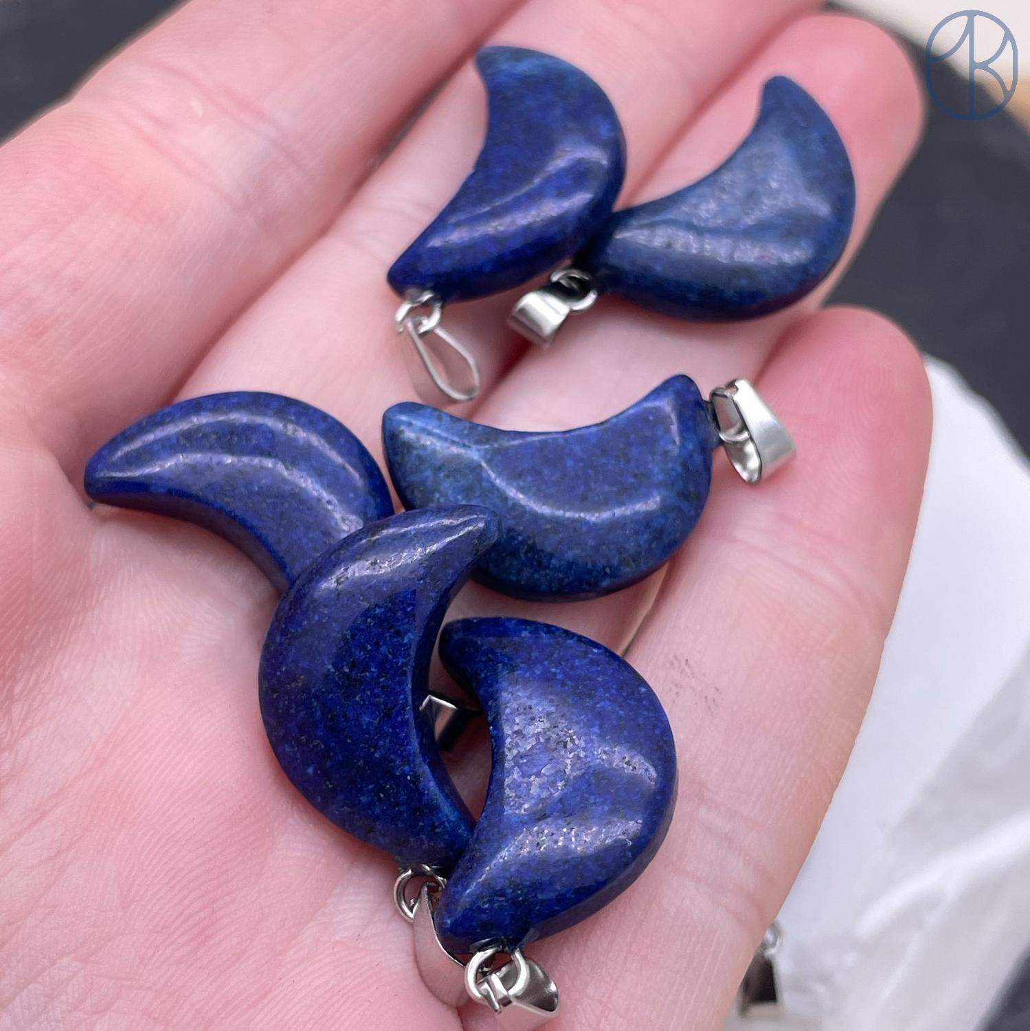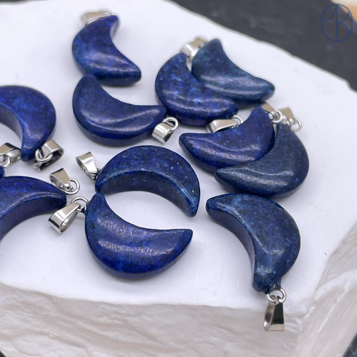 Подвеска луна (полумесяц) Лазурит (тонированный), цвет серебро 19х11 мм