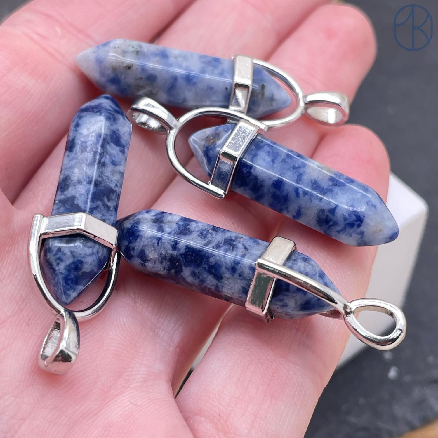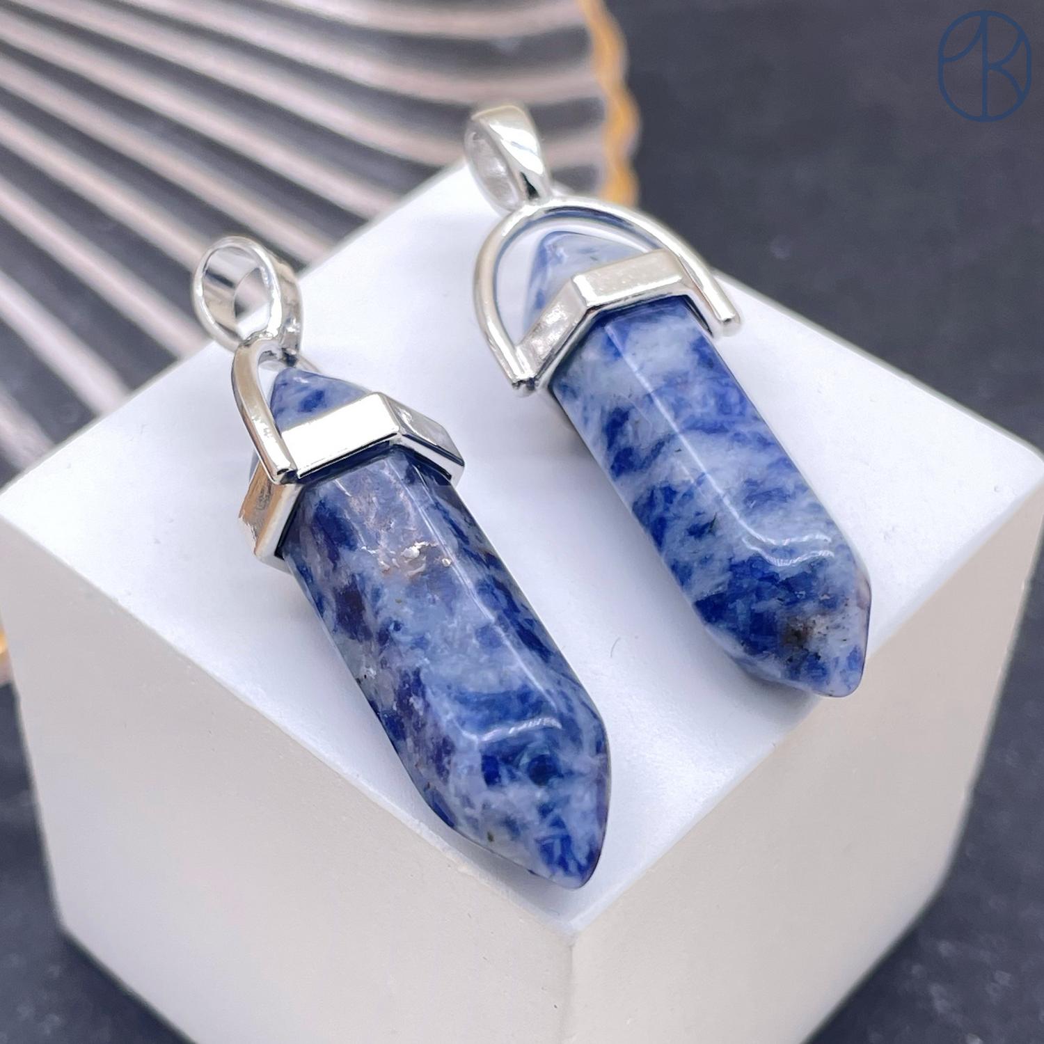 Подвеска маятник Яшма синяя пятнистая, цвет серебро 42х9 мм