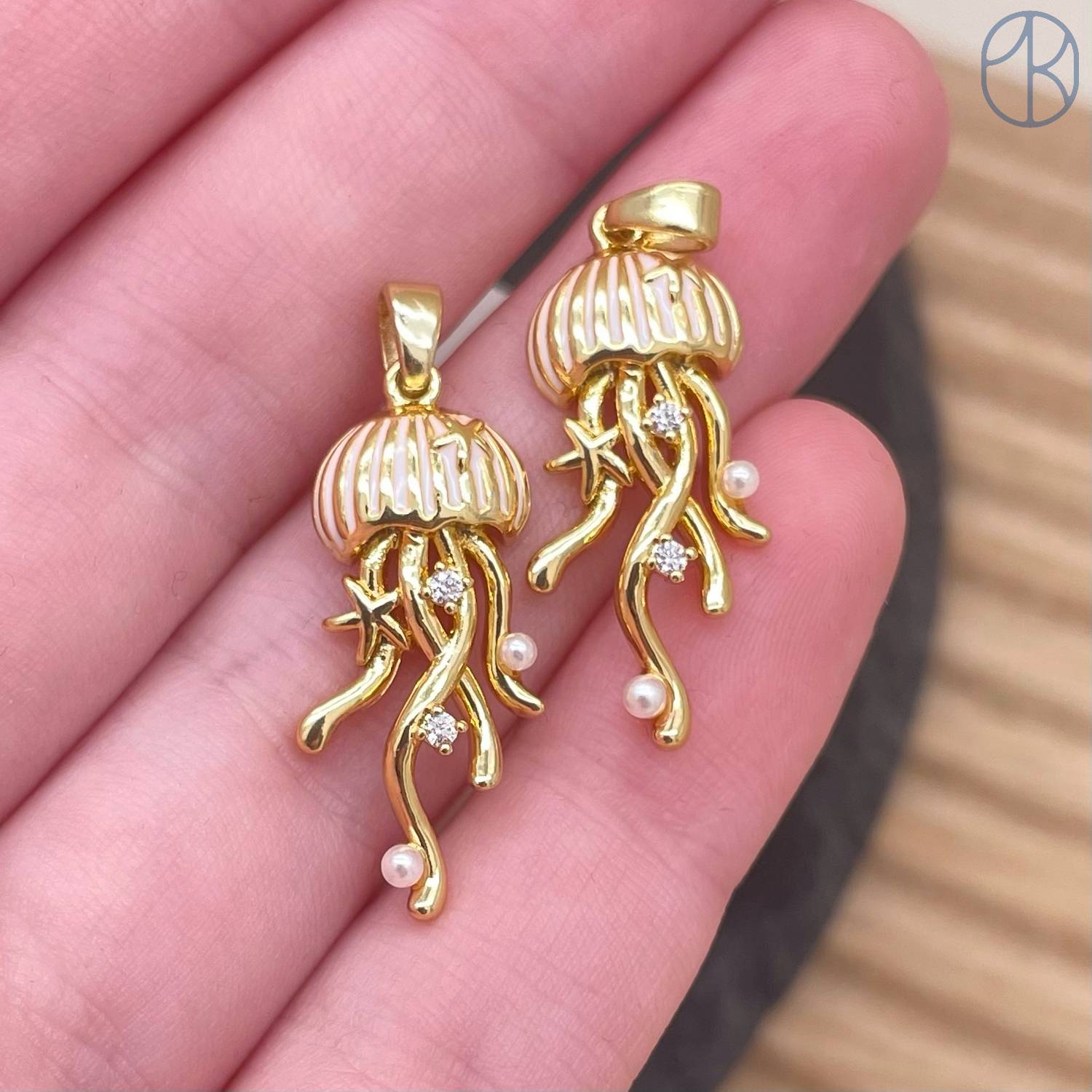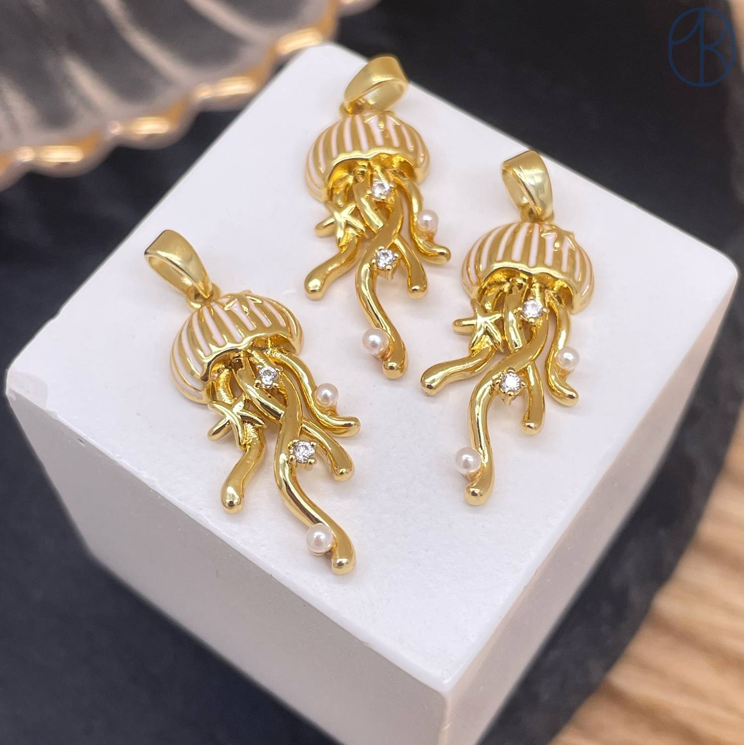 Подвеска медуза белая эмаль, цвет золото 22 мм