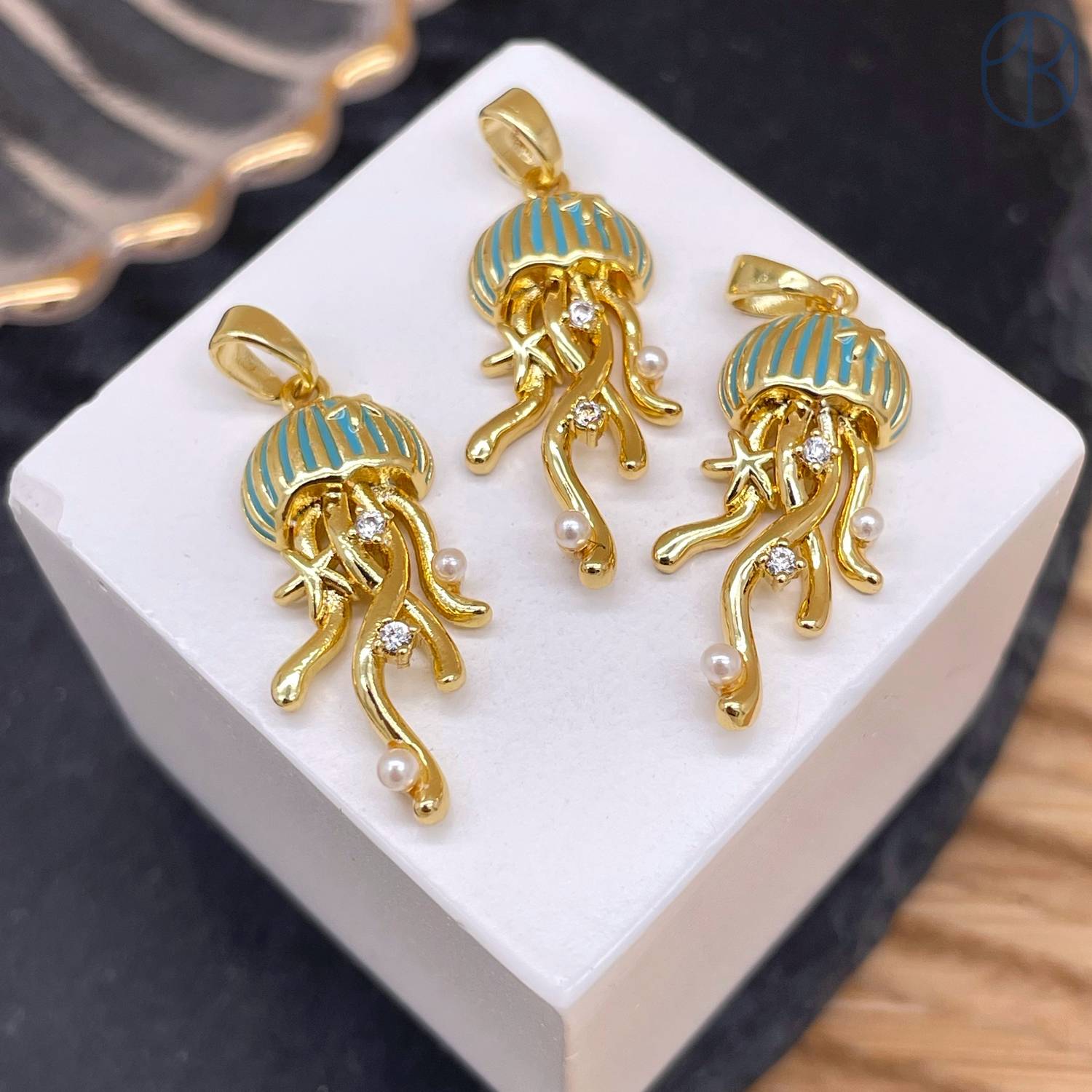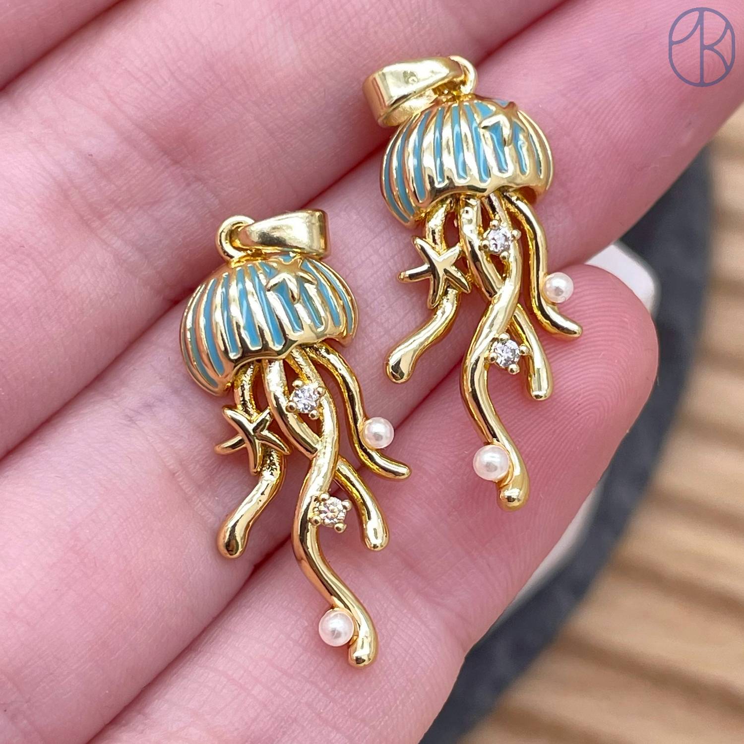 Подвеска медуза голубая эмаль, цвет золото 22 мм