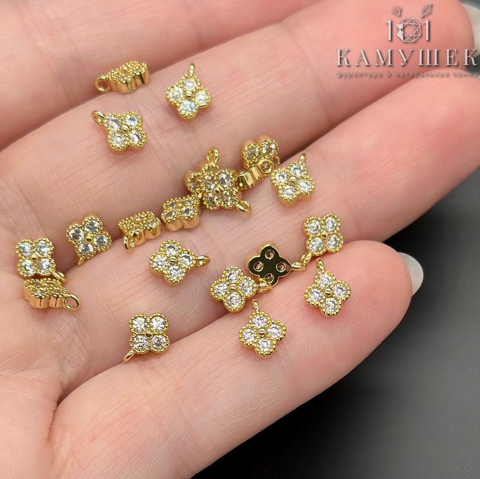 Подвеска мини клевер цирконы, цвет золото 5x8 мм