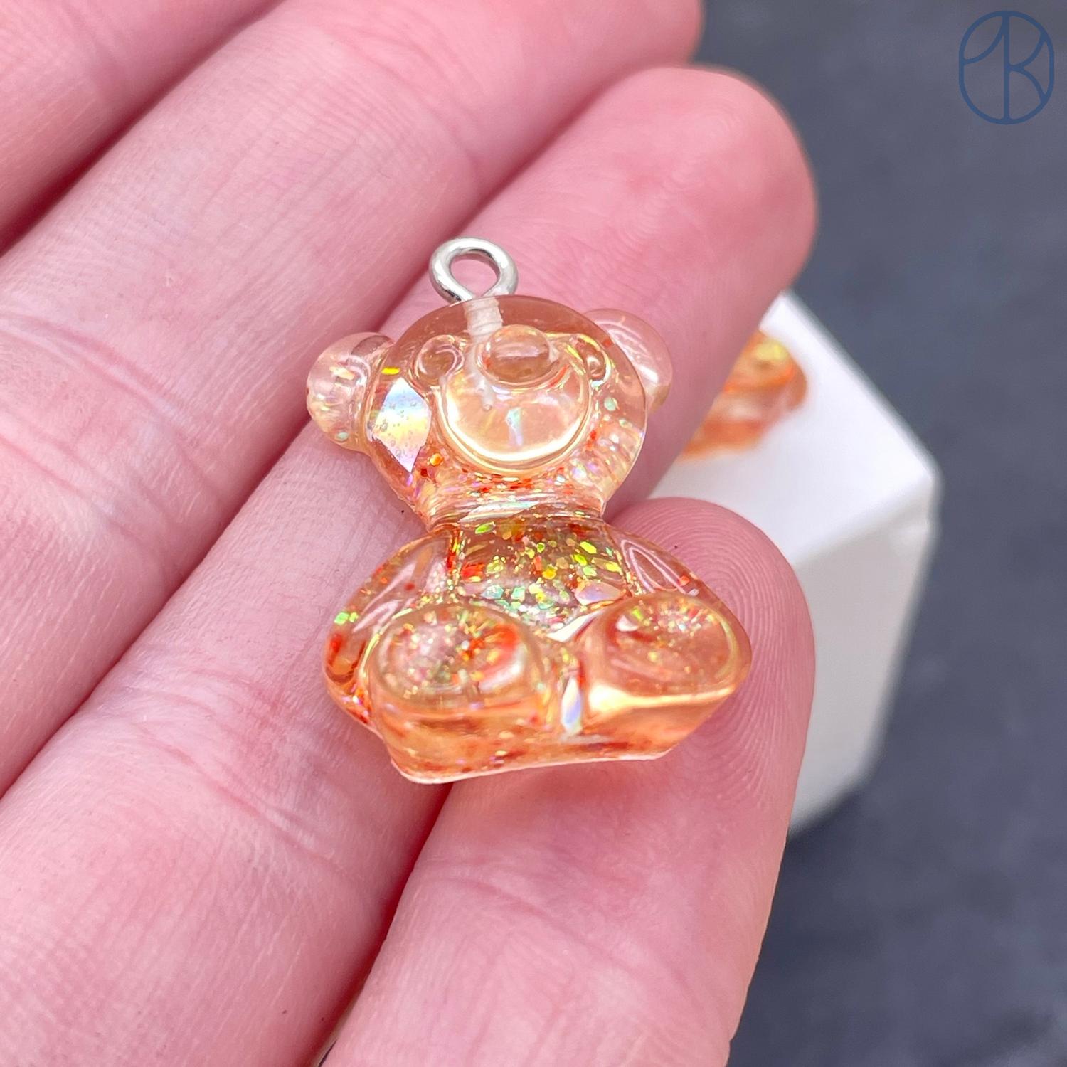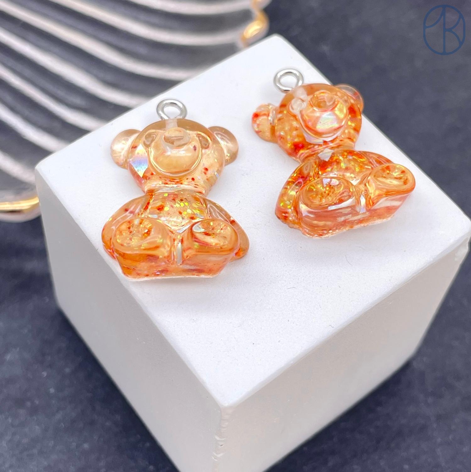 Подвеска мишка пластиковый светло-оранжевый с блестками, цвет золото 20х15 мм