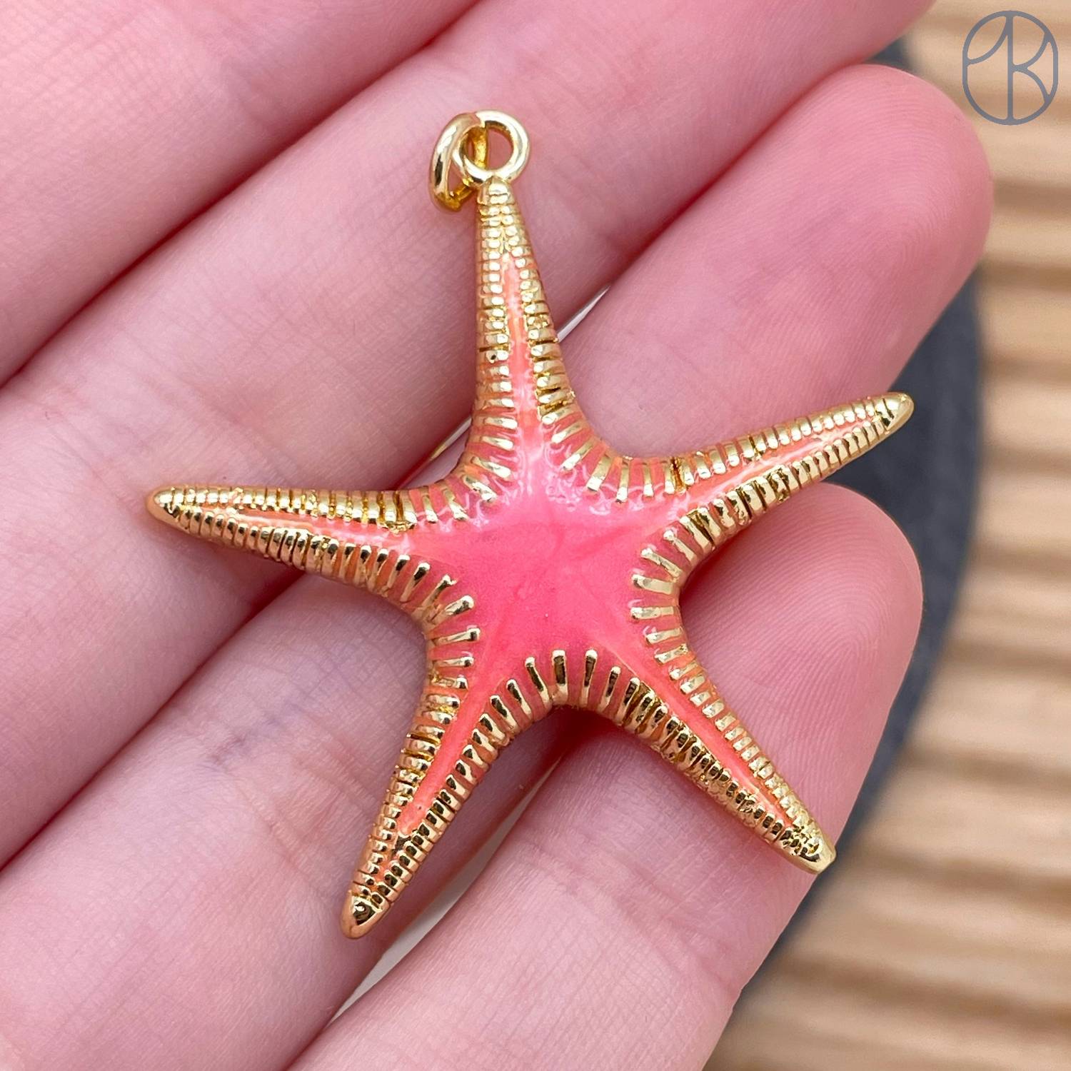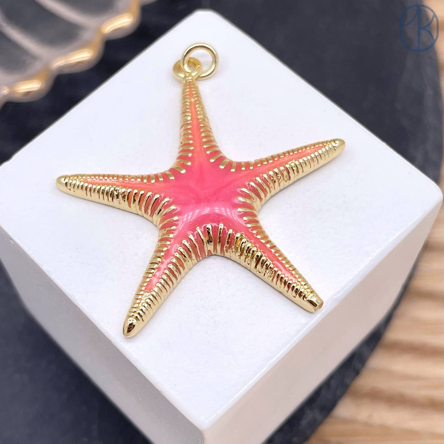 Подвеска морская звезда розовая эмаль, цвет золото 30 мм