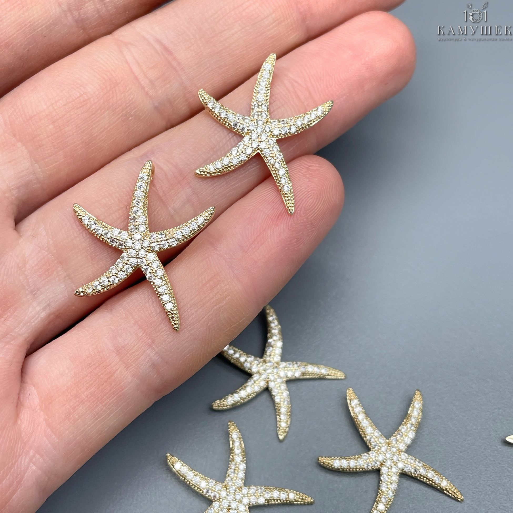 Подвеска морская звезда цирконы, цвет золото 20 мм