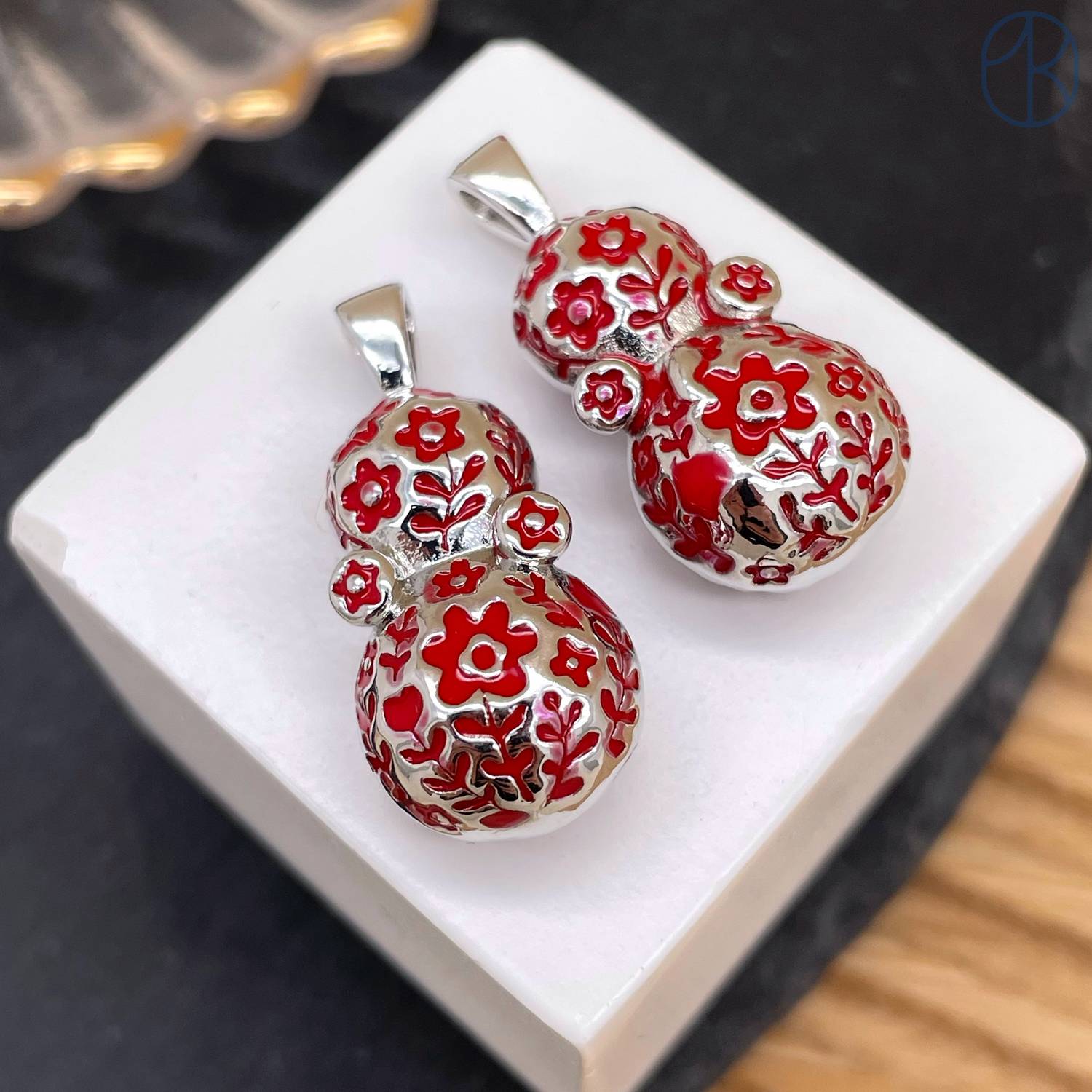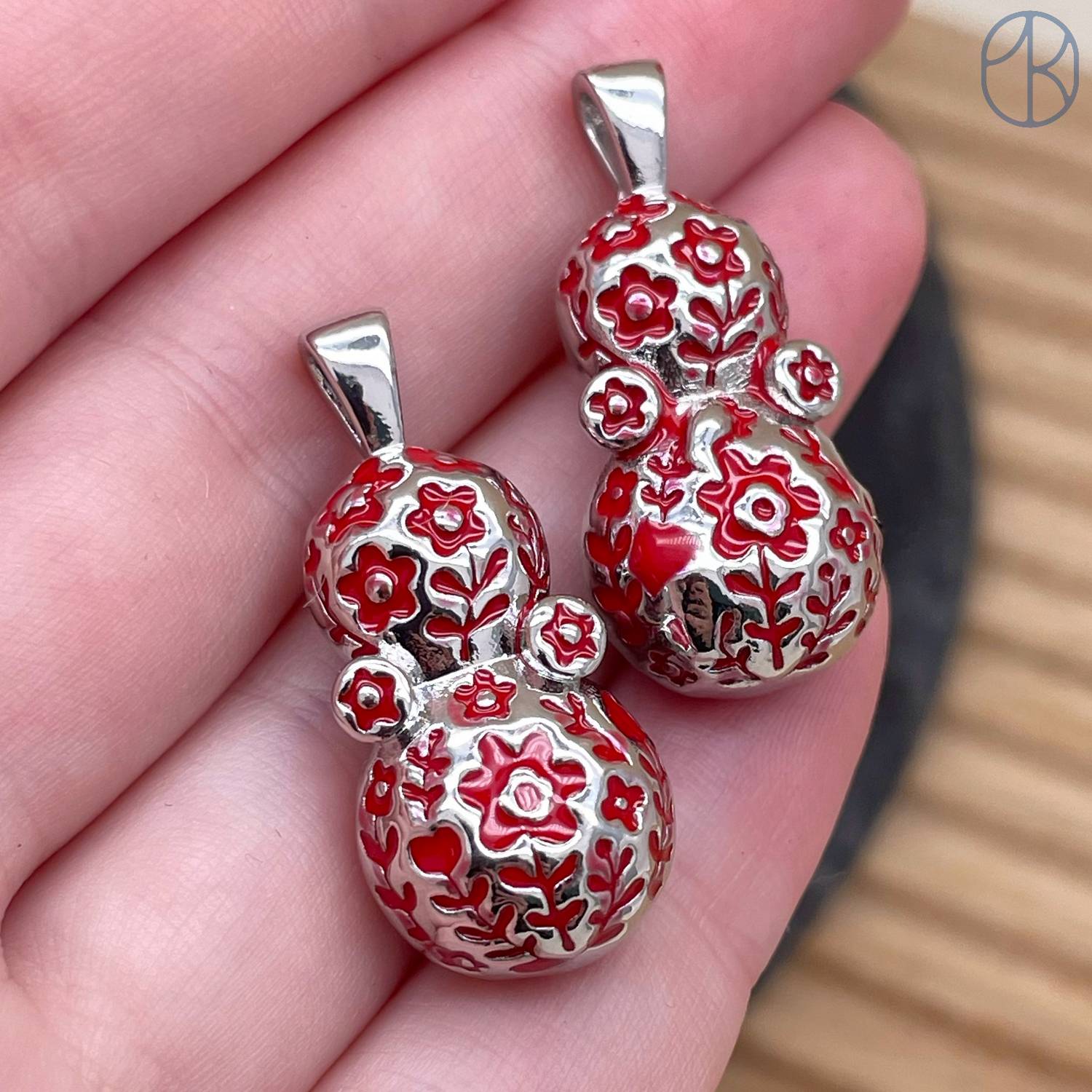 Подвеска неваляшка красный узор, цвет серебро 24 мм