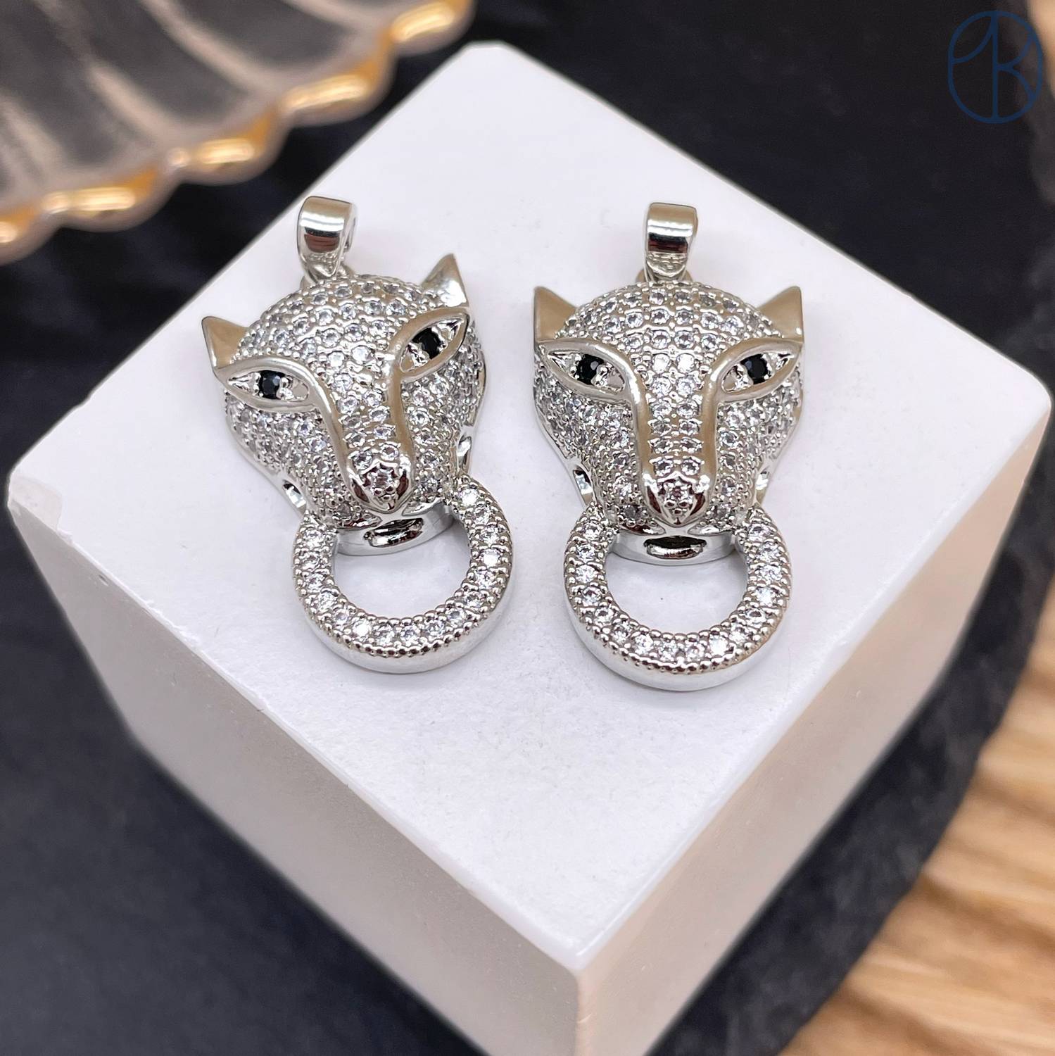 Подвеска пантера цирконы, цвет серебро 24 мм