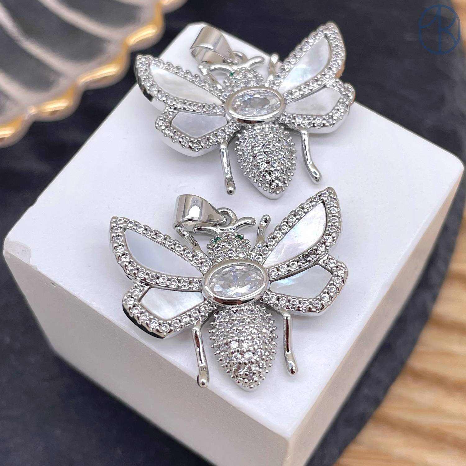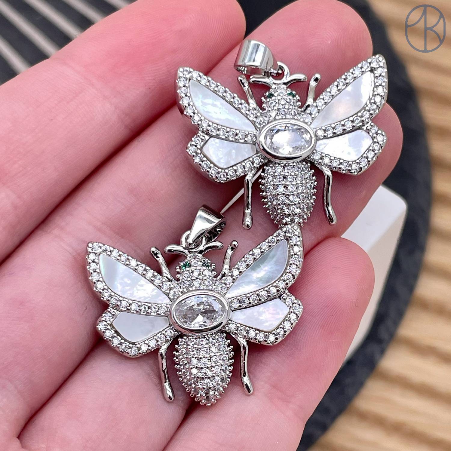 Подвеска пчела цирконы и эмаль, цвет серебро 20 мм