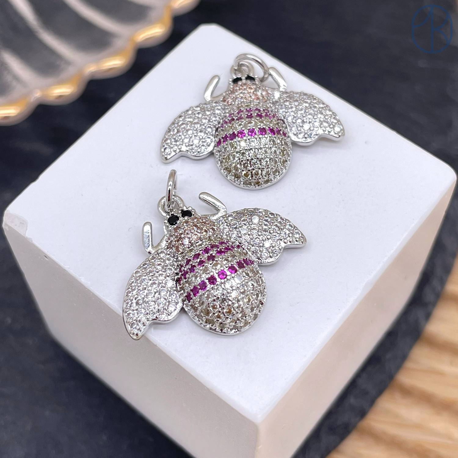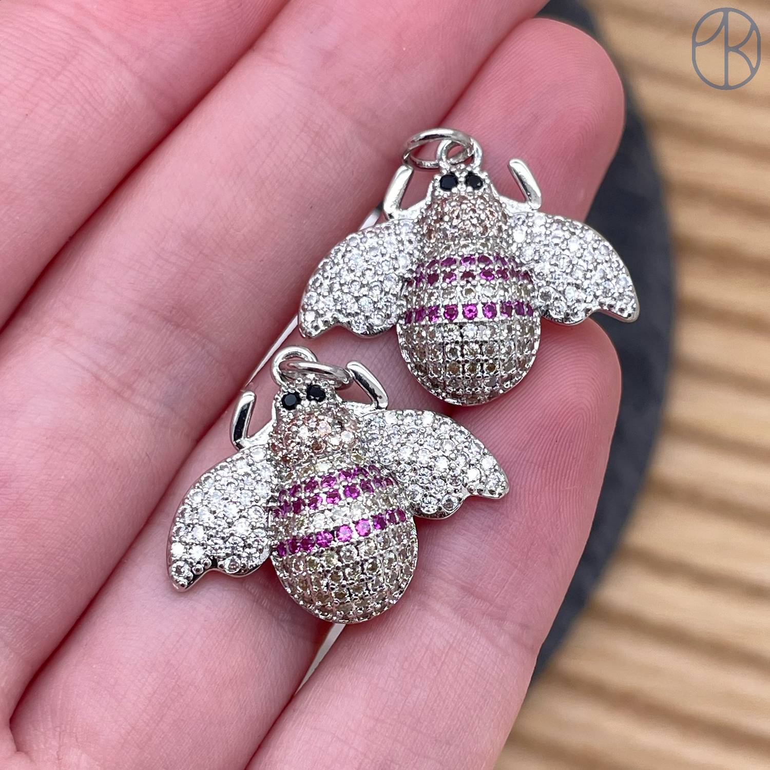 Подвеска пчела цирконы, цвет серебро 19 мм