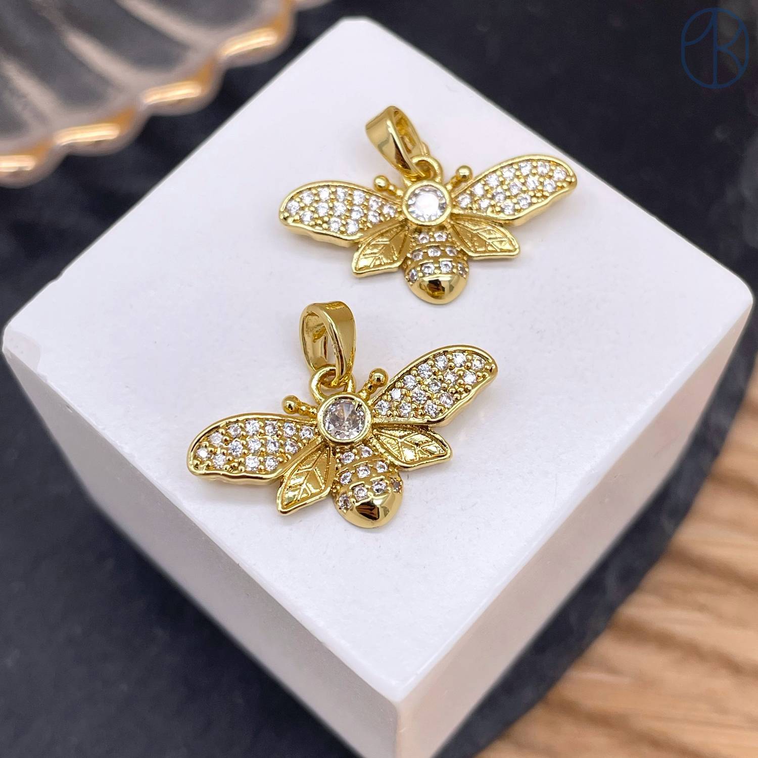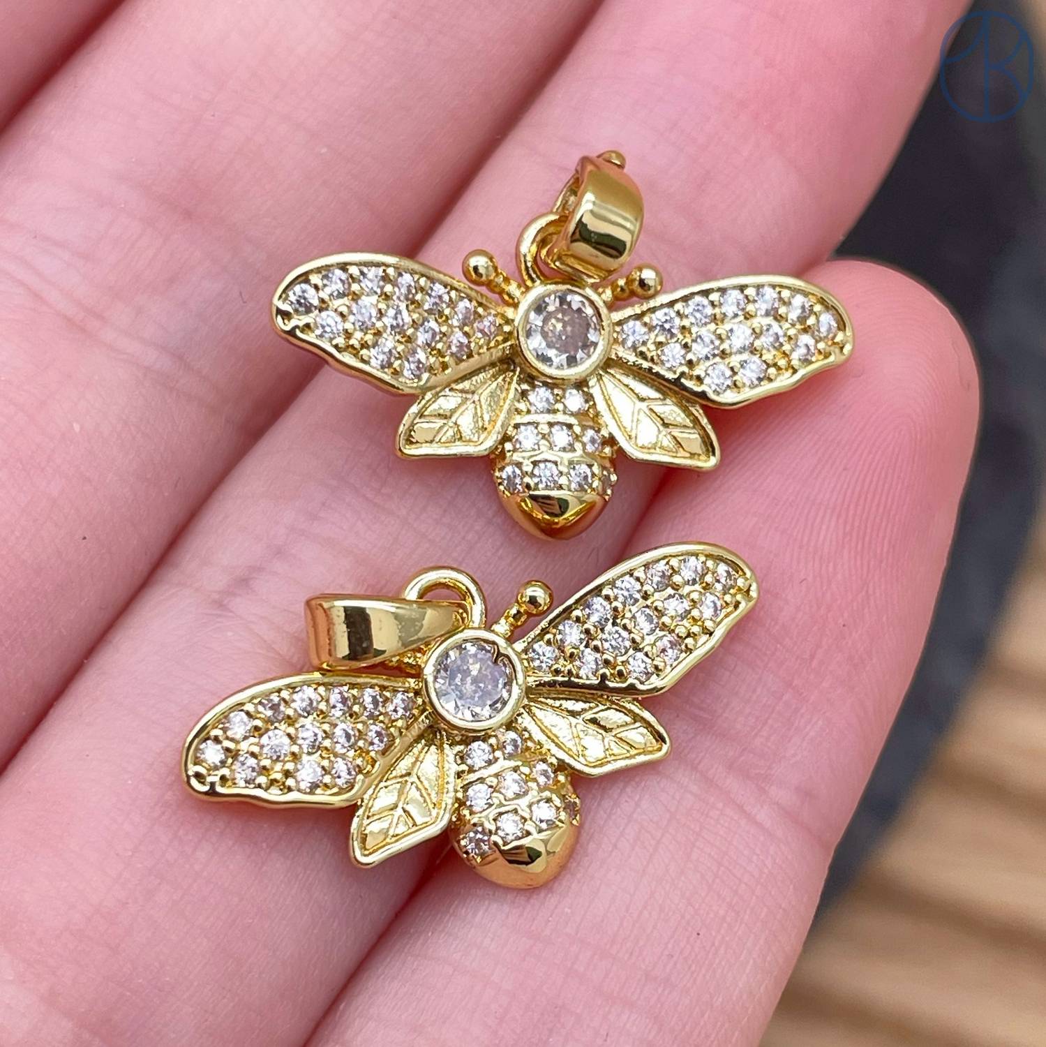 Подвеска пчелка цирконы, цвет золото 12 мм