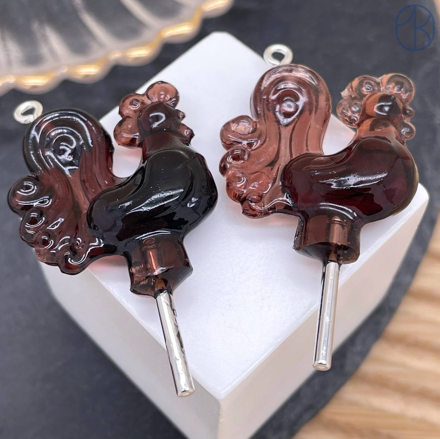Подвеска петушок темно-коричневый, цвет серебро ~ 5 см