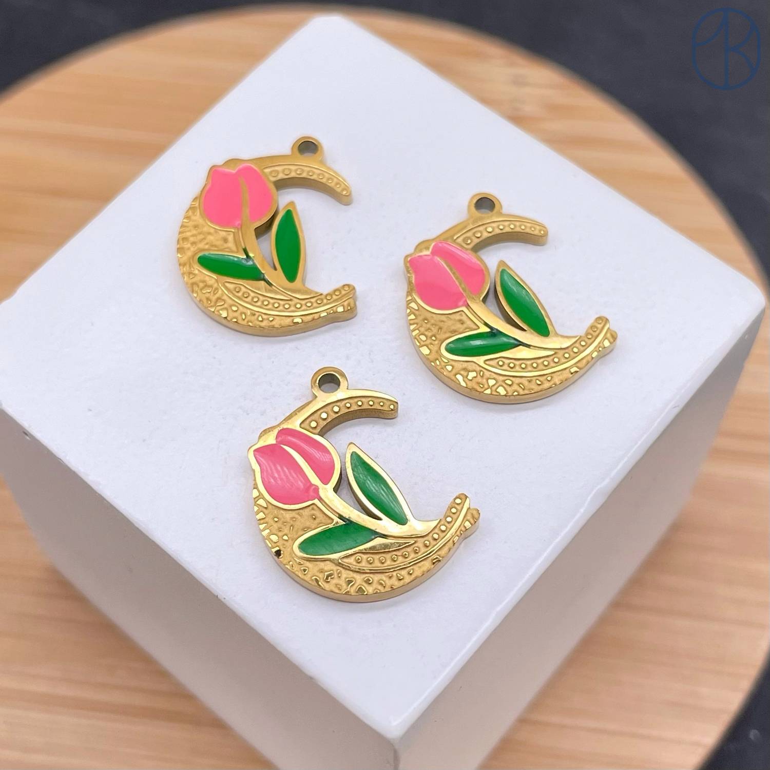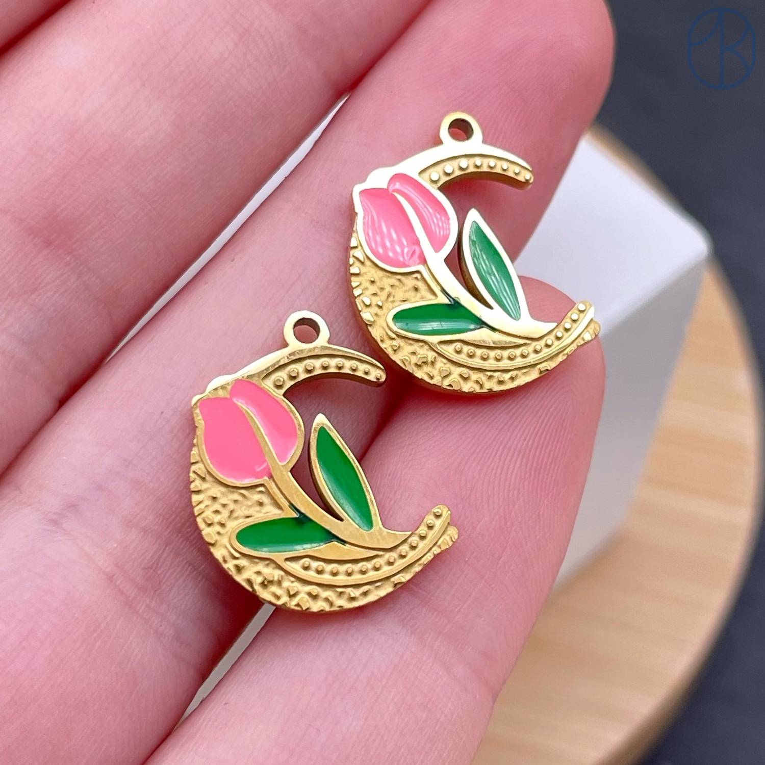 Подвеска полумесяц и тюльпан сталь 15 мм, цвет золото 18К