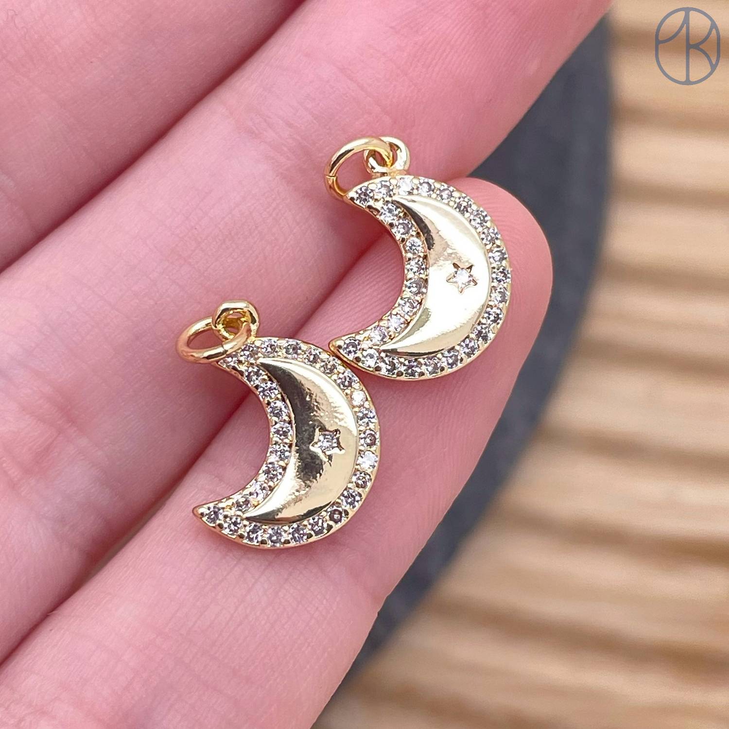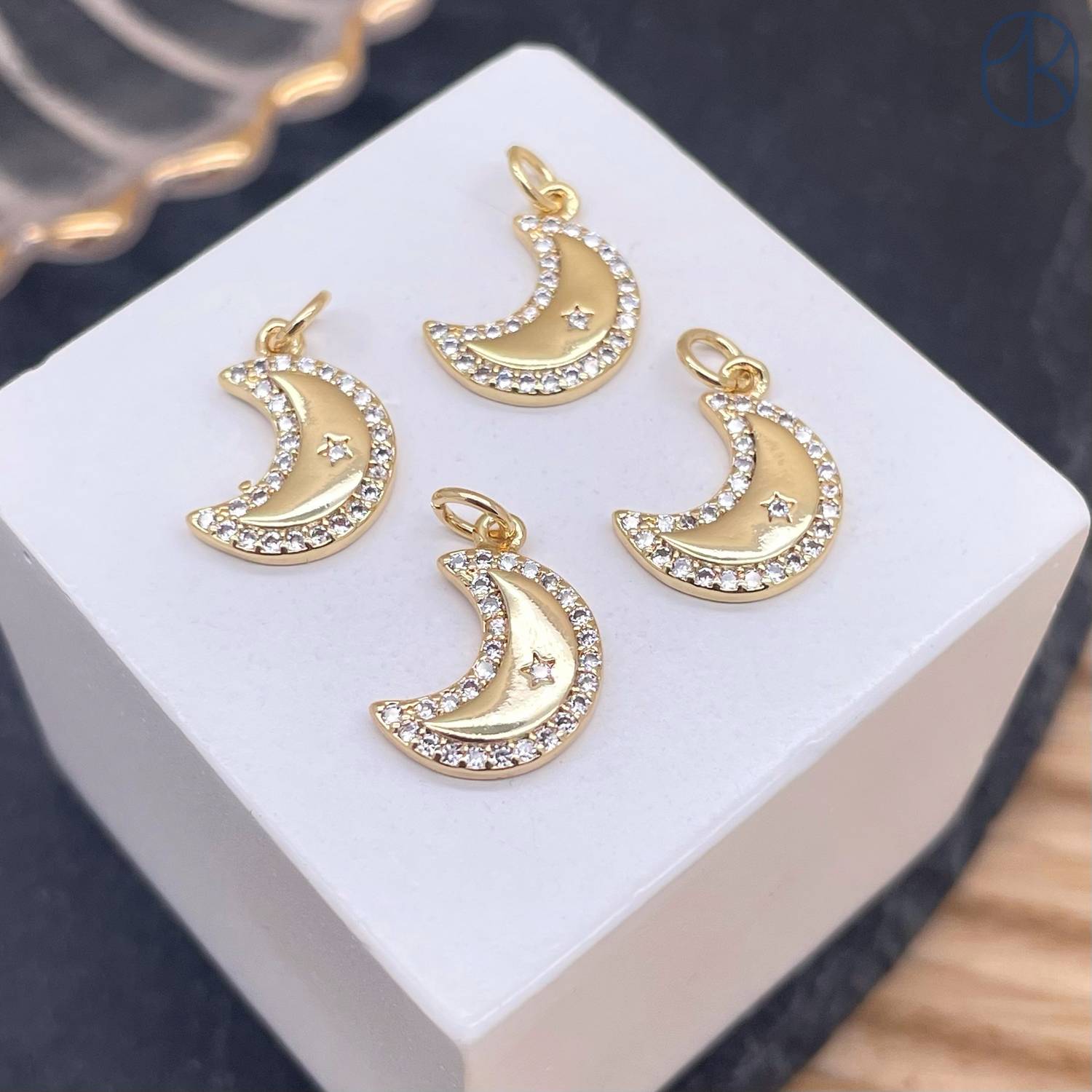 Подвеска полумесяц цирконы, цвет золото 12 мм
