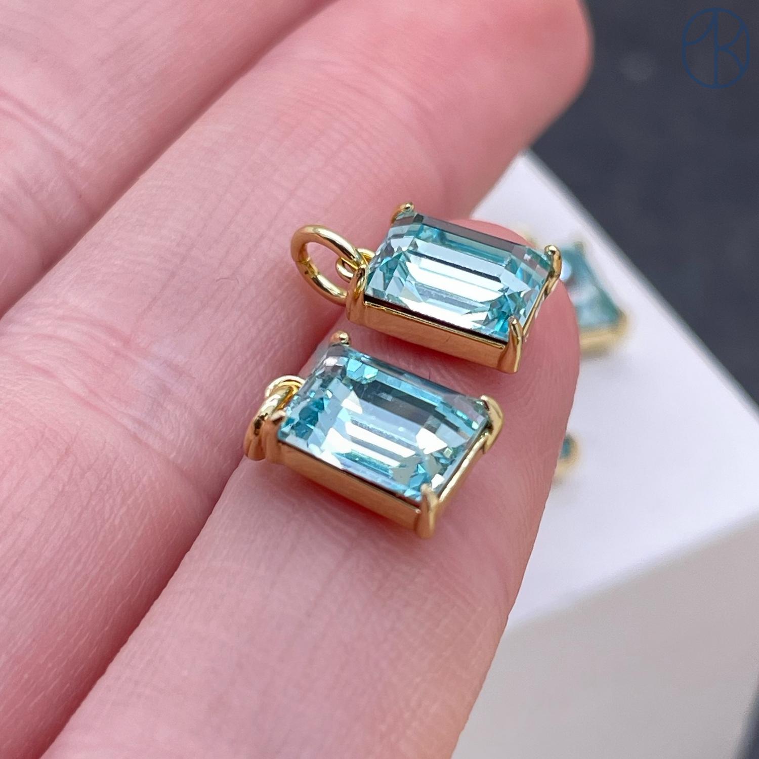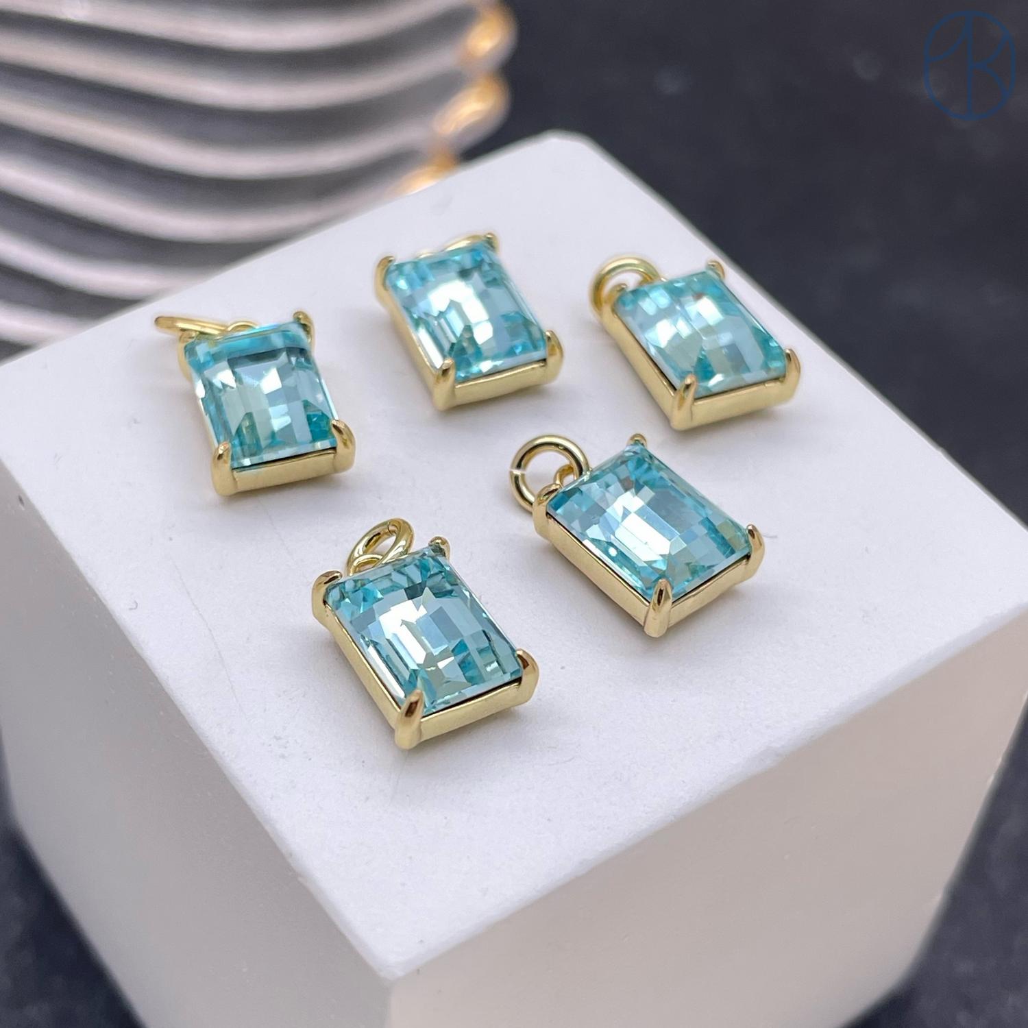 Подвеска прямоугольник голубое стекло, цвет золото 9х7 мм