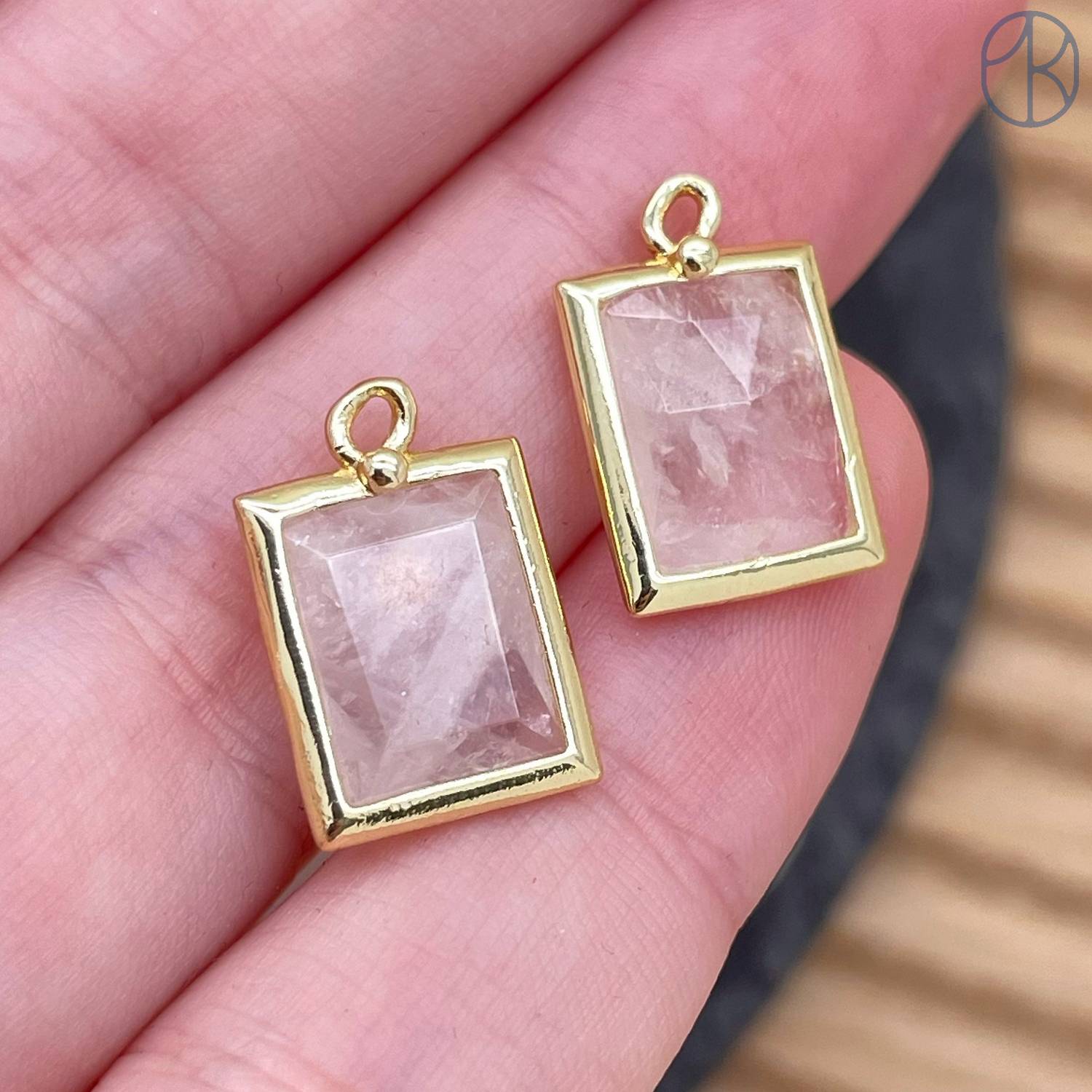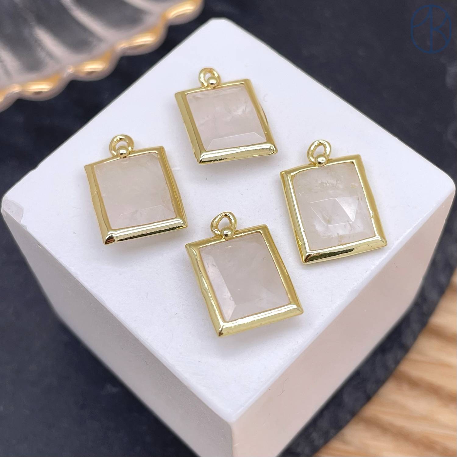 Подвеска прямоугольник огранка горный хрусталь, цвет золото 13х10 мм