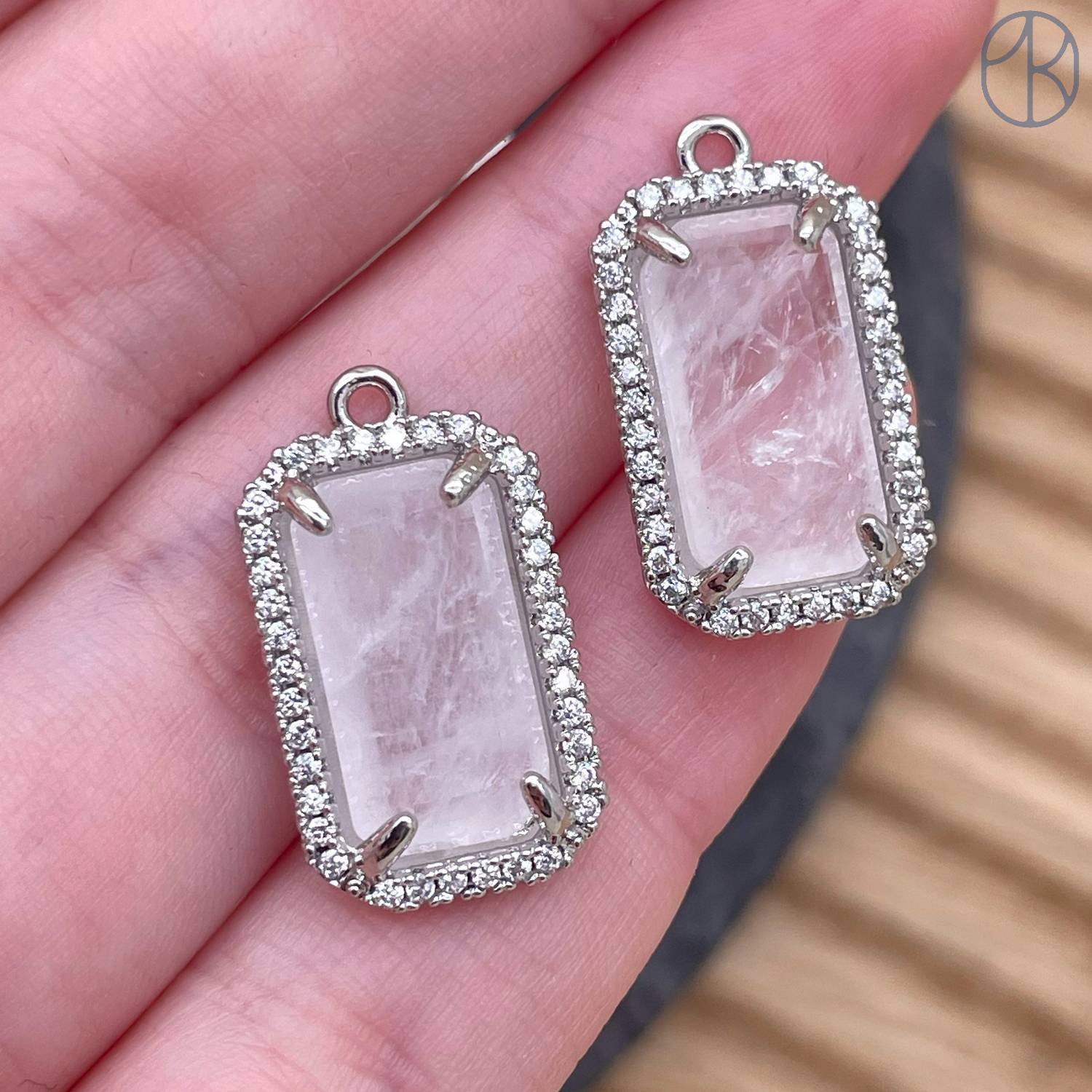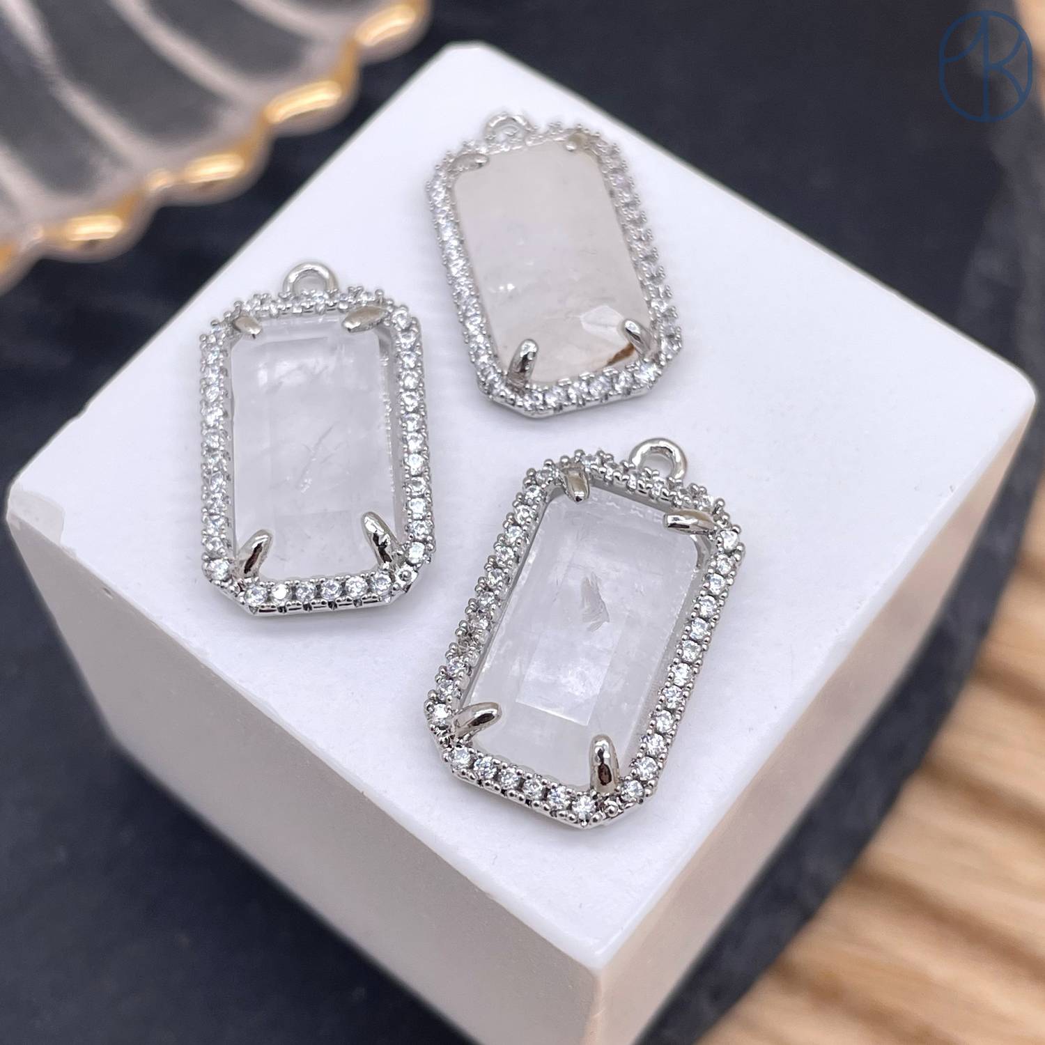 Подвеска прямоугольник цирконы горный хрусталь, цвет серебро 18х12 мм