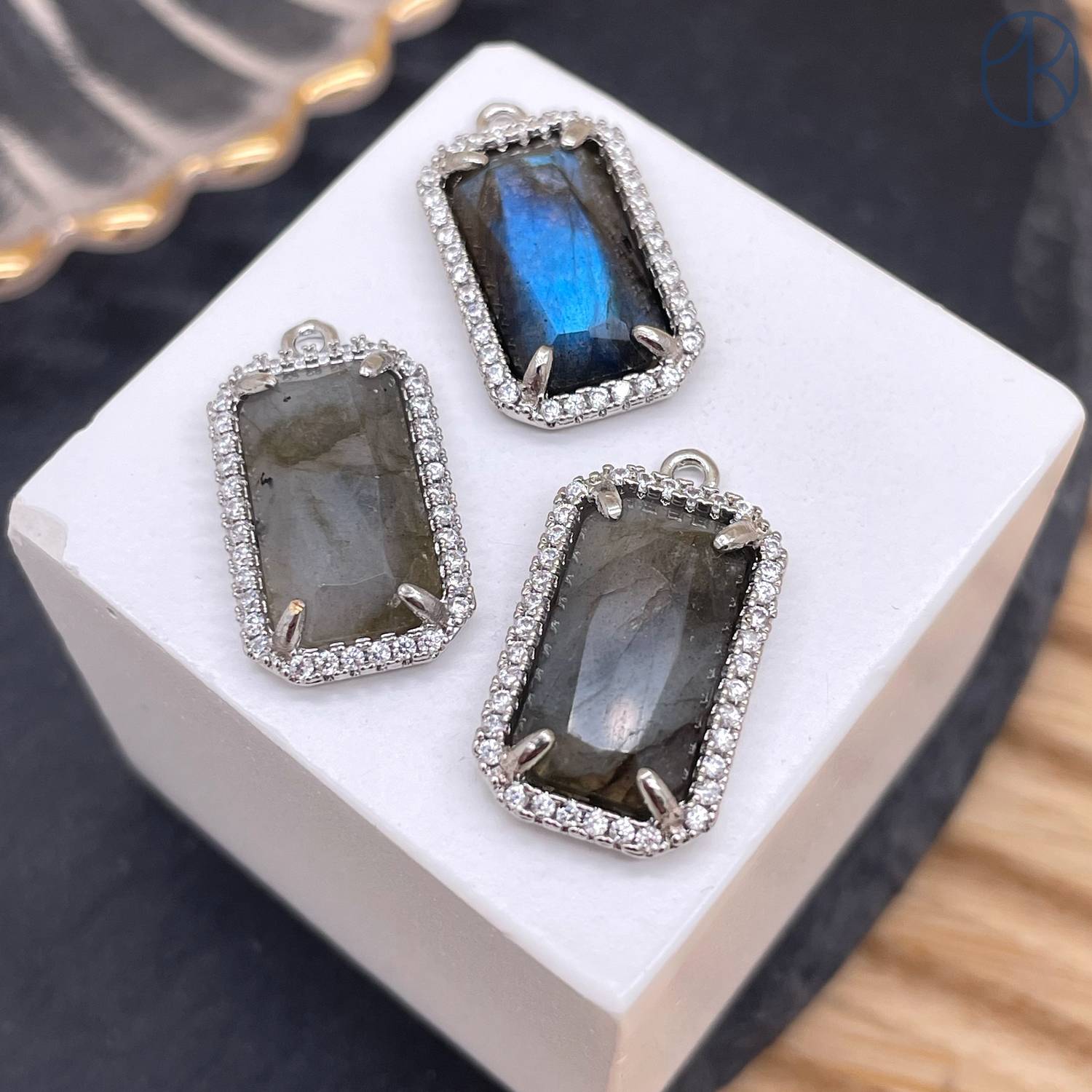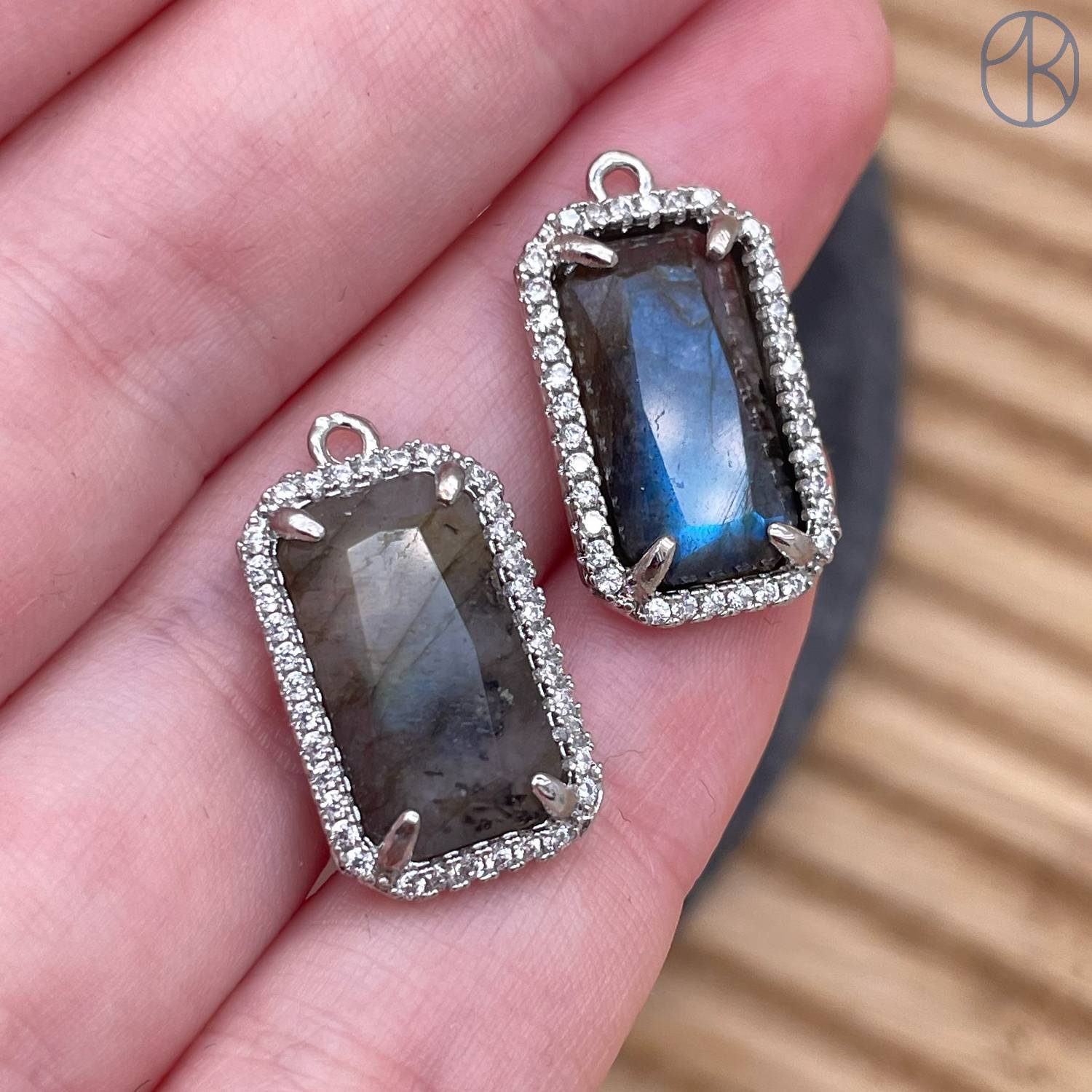 Подвеска прямоугольник цирконы лабрадор, цвет серебро 18х12 мм