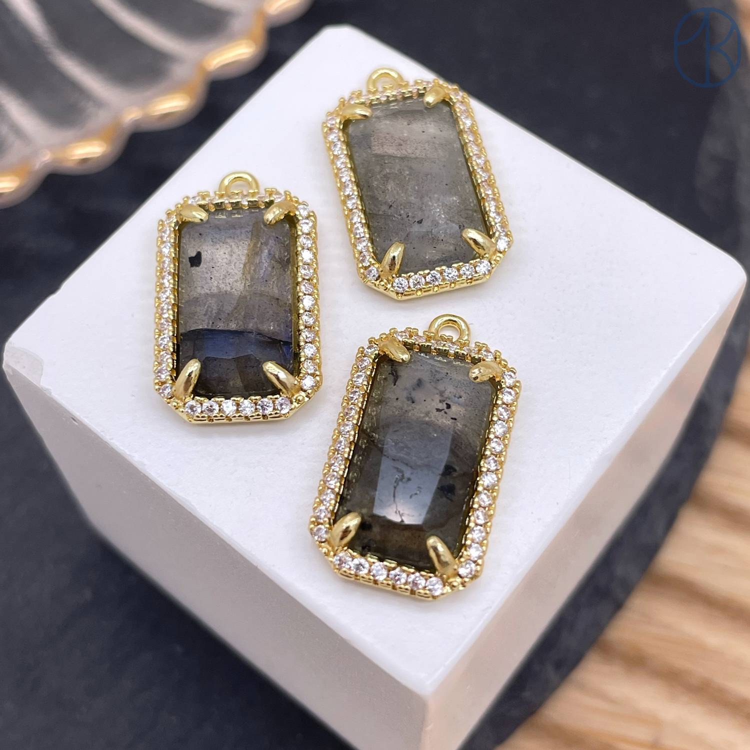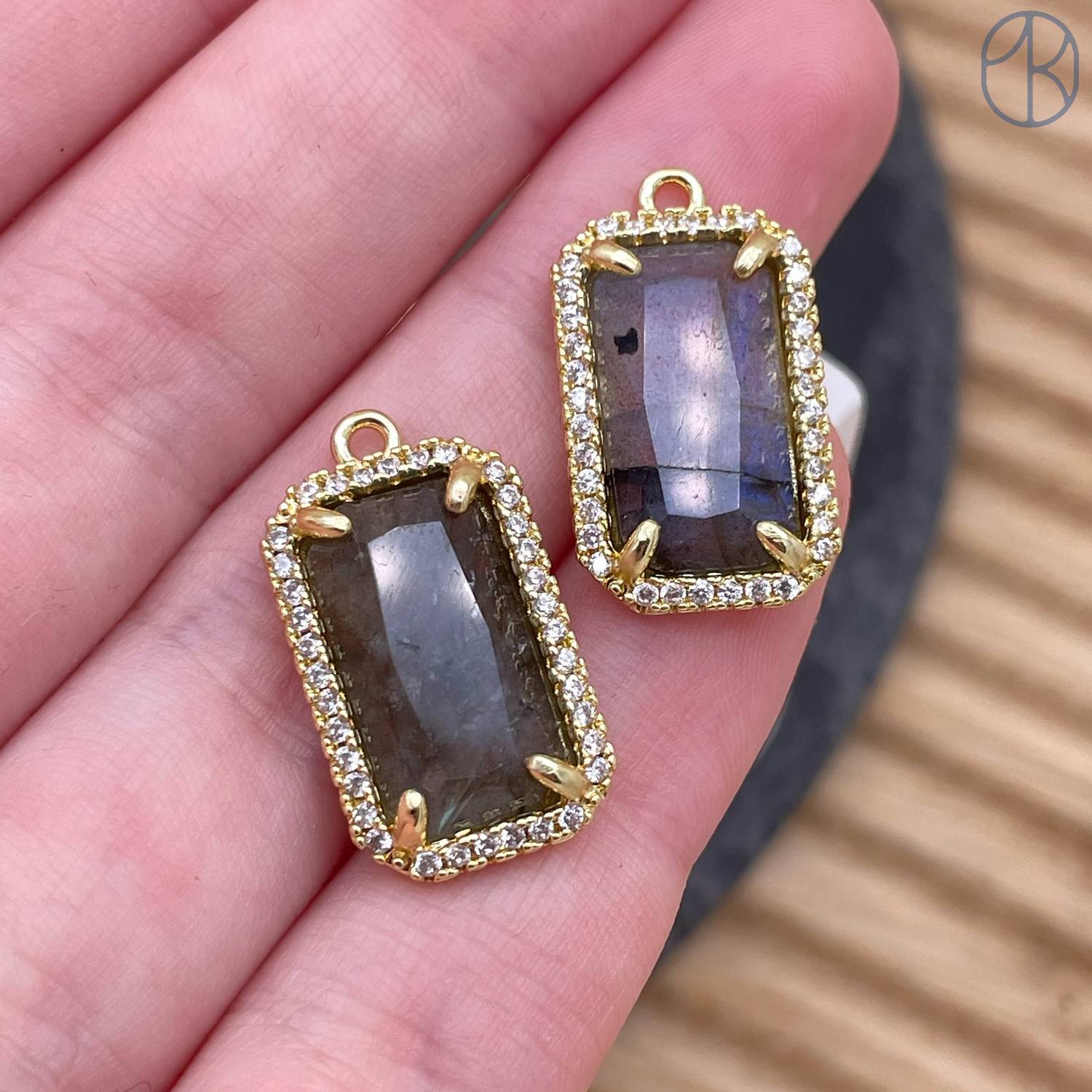 Подвеска прямоугольник цирконы лабрадор, цвет золото 18х12 мм