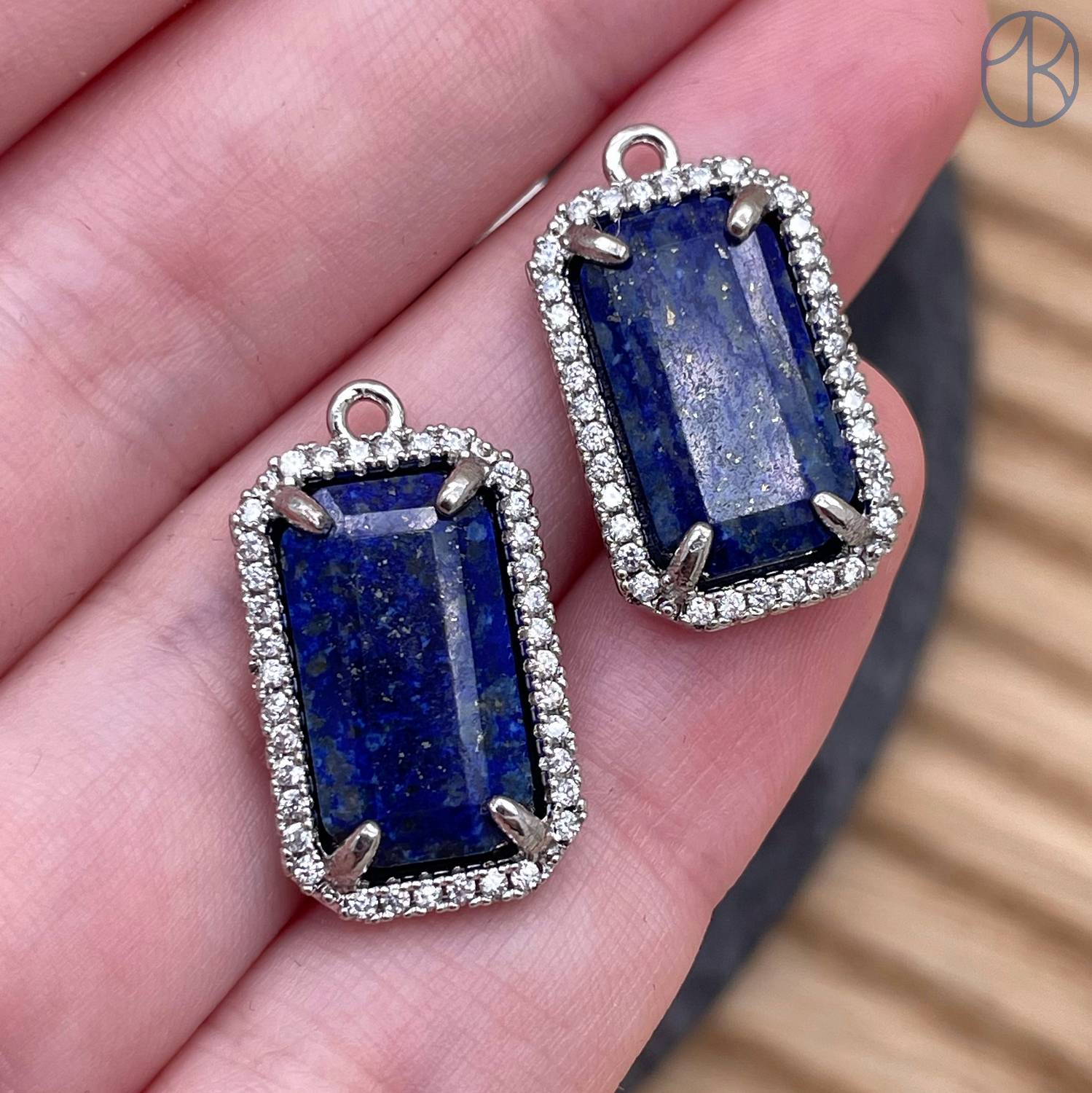 Подвеска прямоугольник цирконы лазурит, цвет серебро 18х12 мм