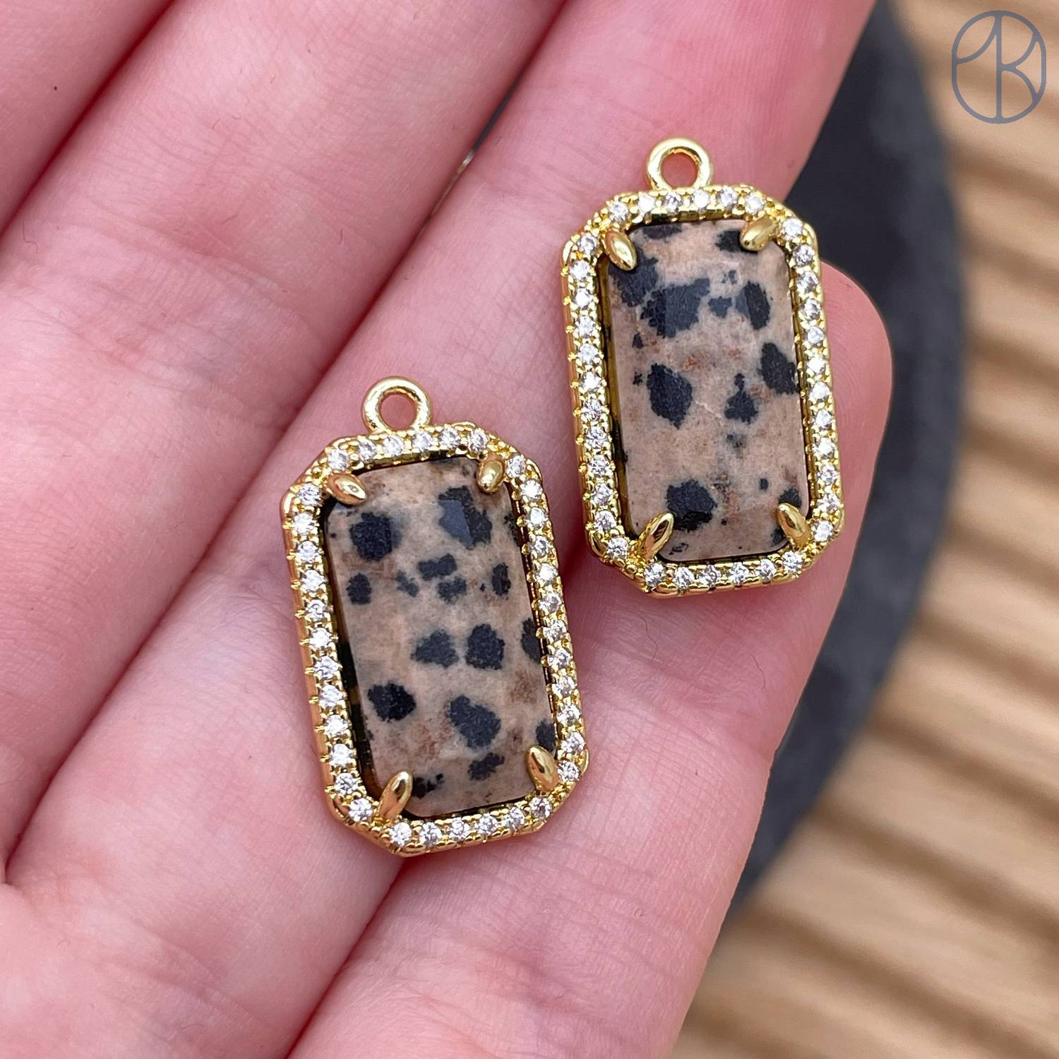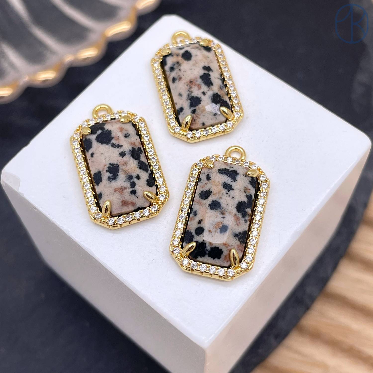 Подвеска прямоугольник цирконы яшма далматиновая, цвет золото 18х12 мм