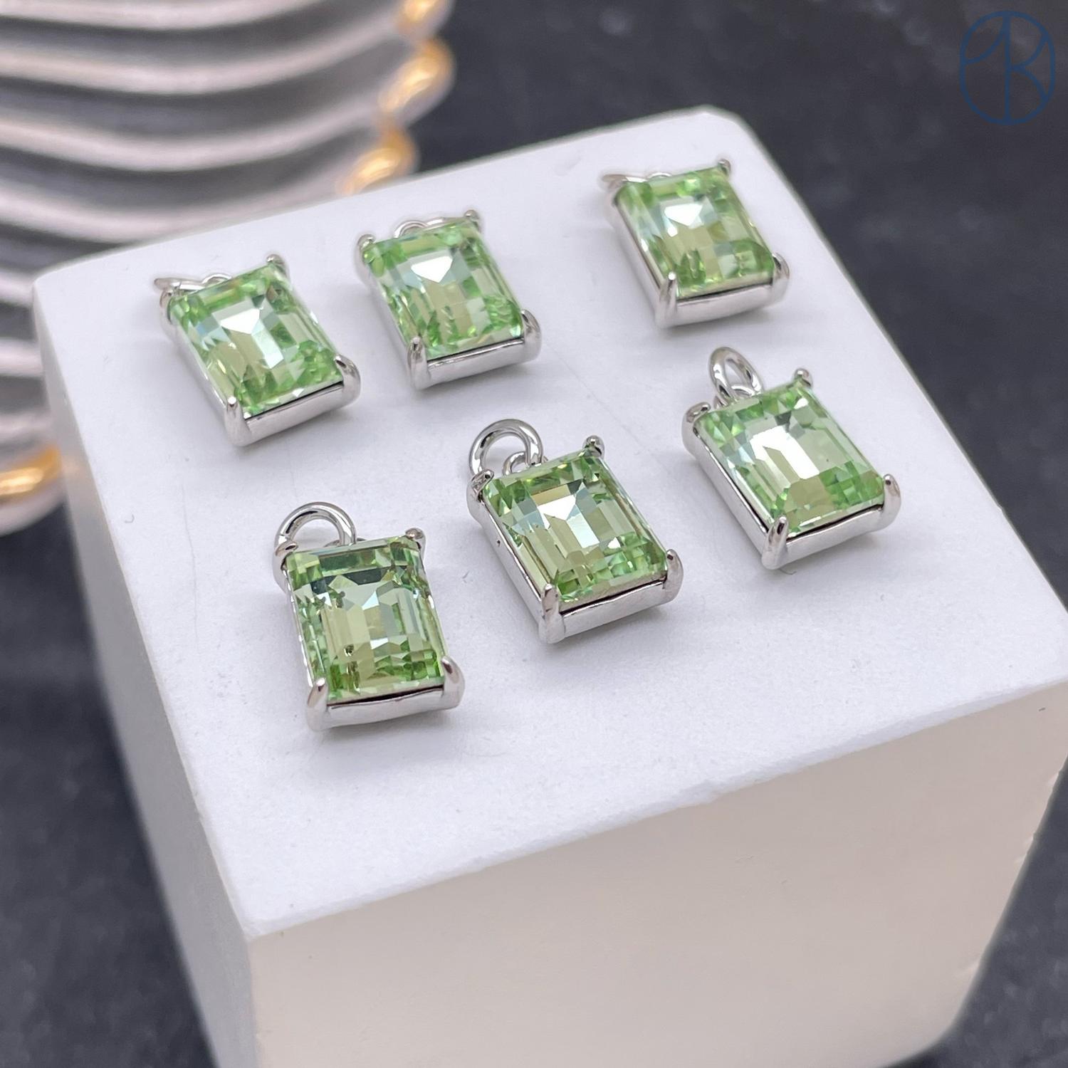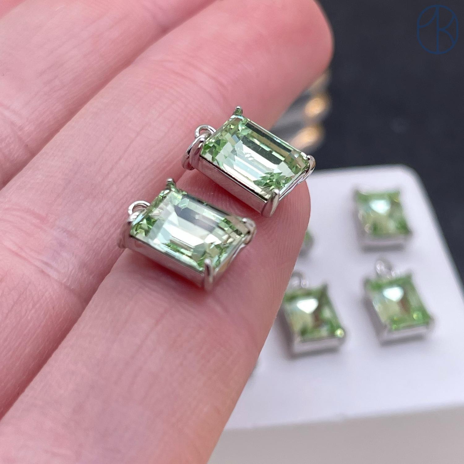 Подвеска прямоугольник зеленое стекло, цвет серебро 9х7 мм
