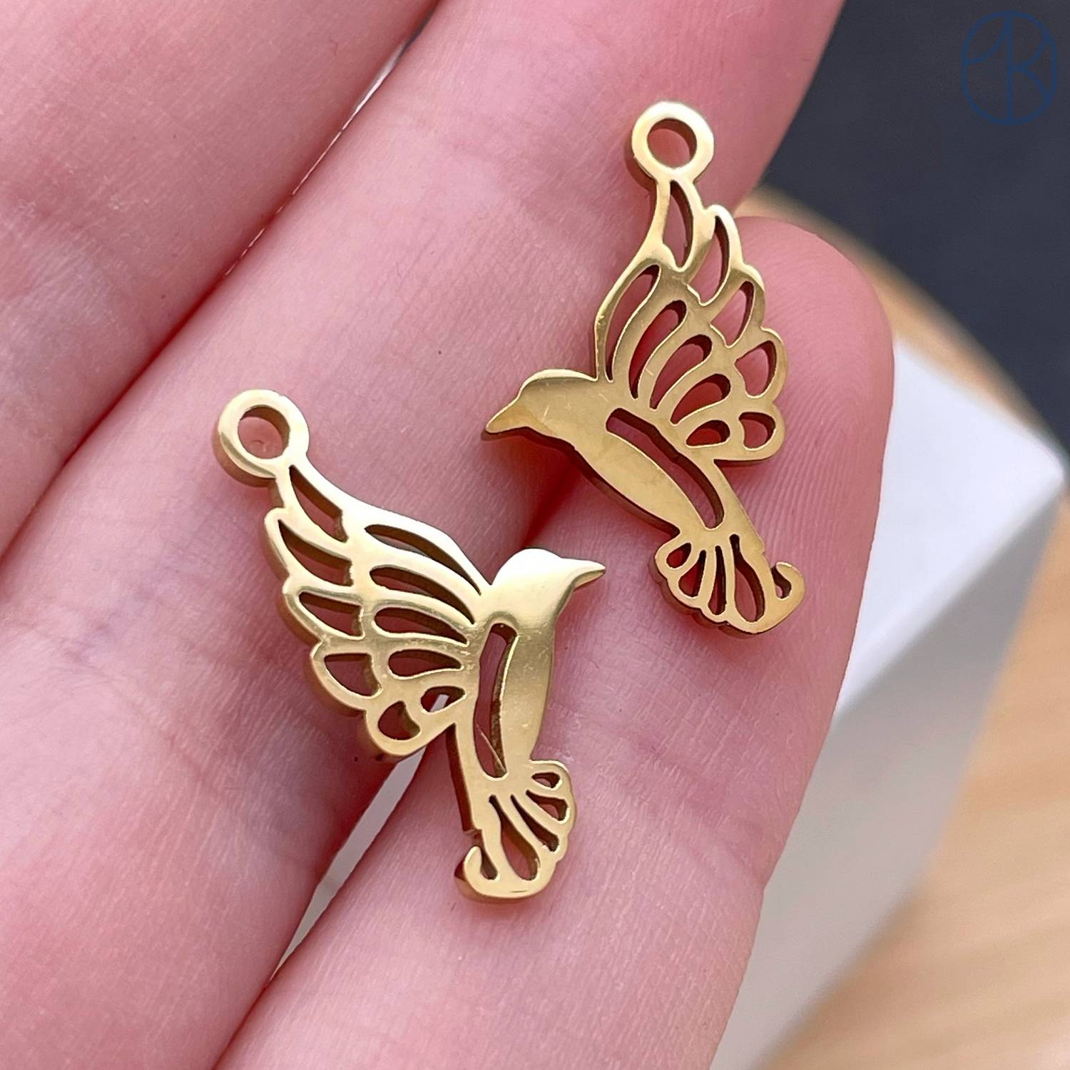 Подвеска птица сталь 12 мм, цвет золото 18К