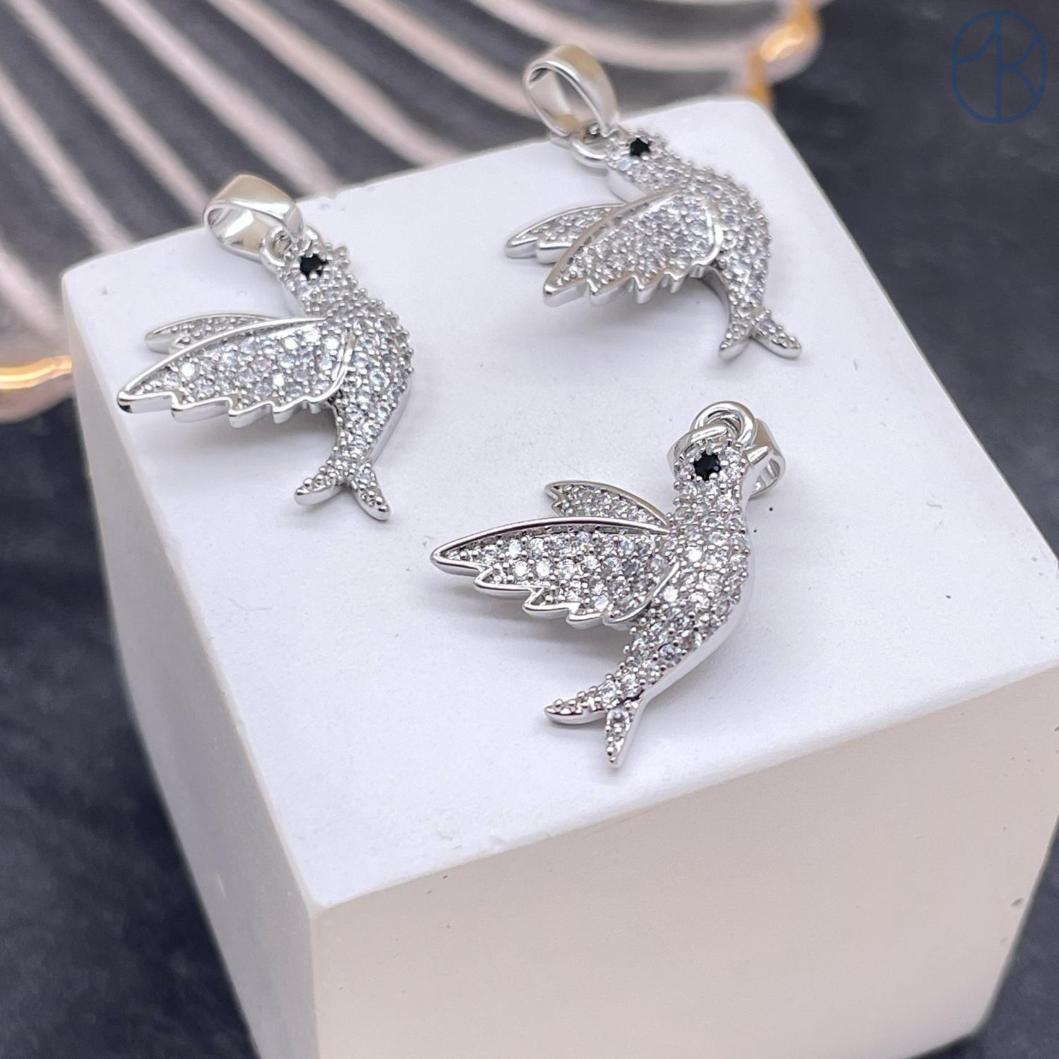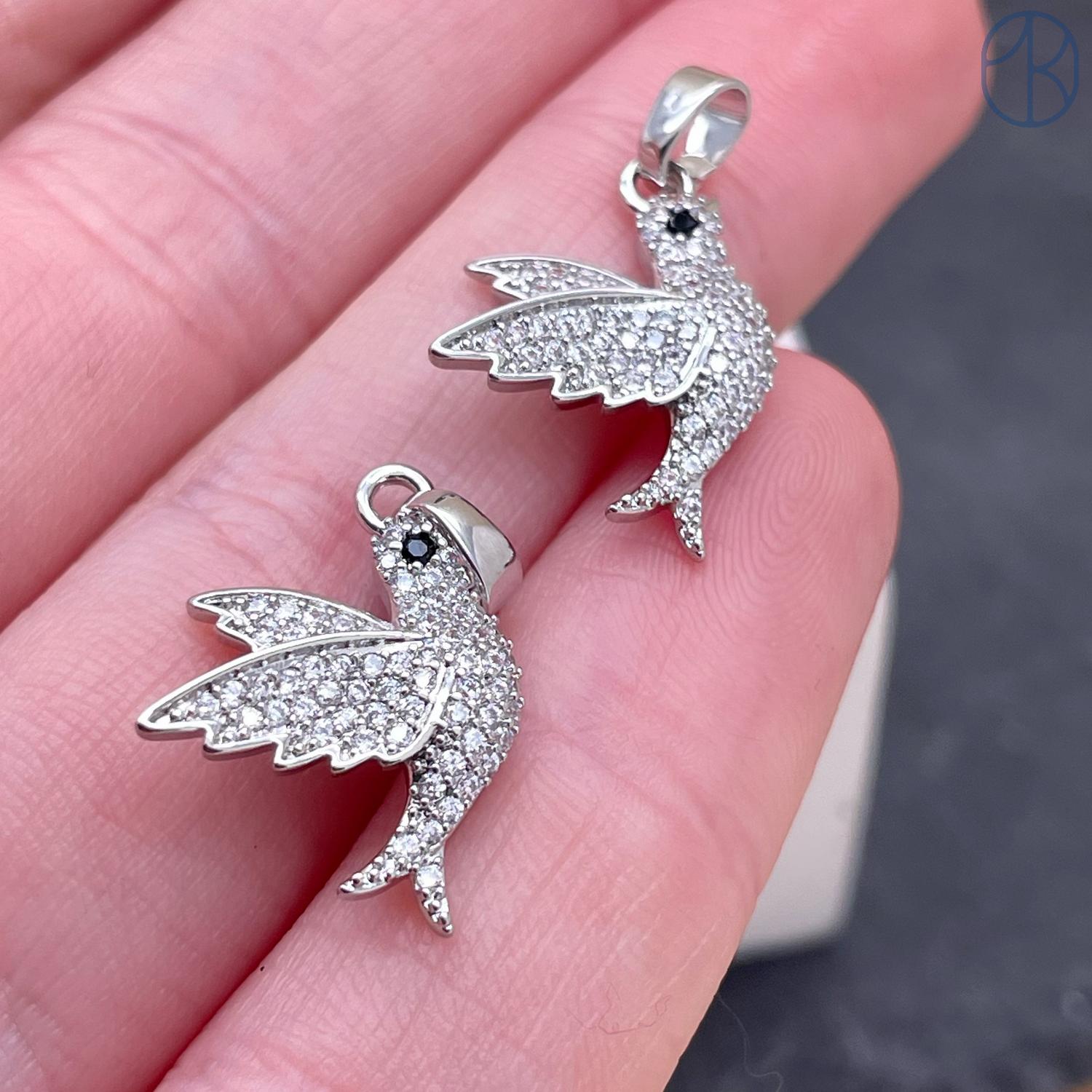 Подвеска птица цирконы, цвет серебро 14х16 мм