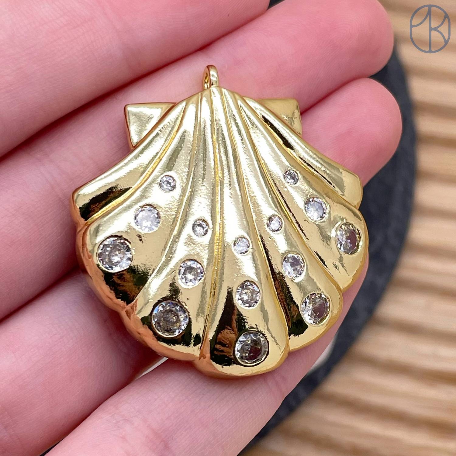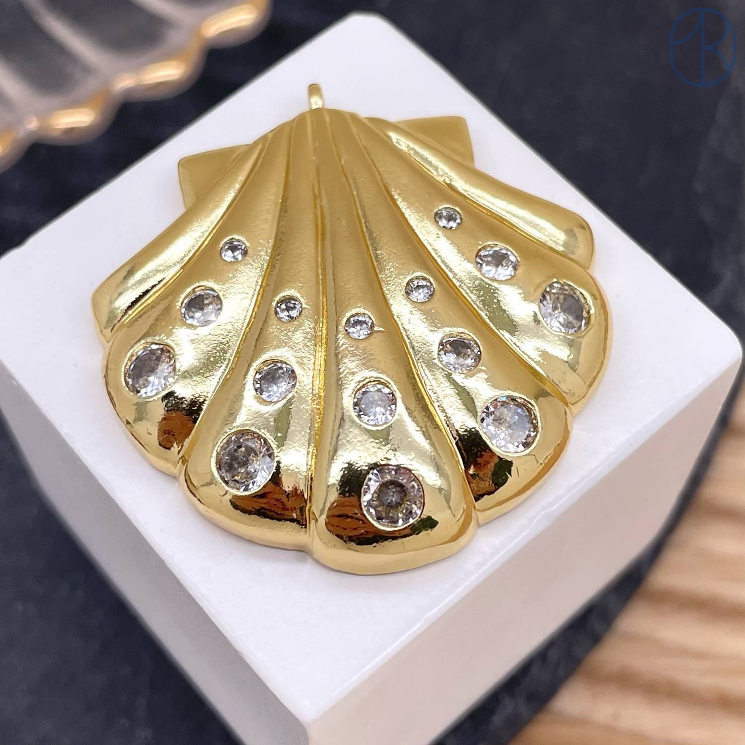 Подвеска ракушка циркон, цвет золото 35 мм