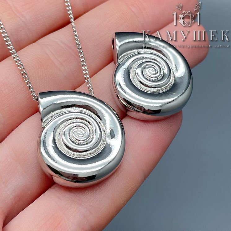 Подвеска ракушка улитка, цвет серебро 25х22 мм