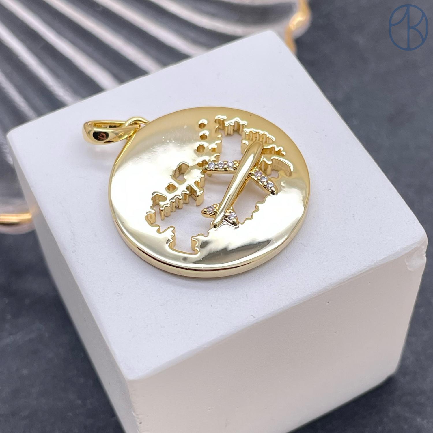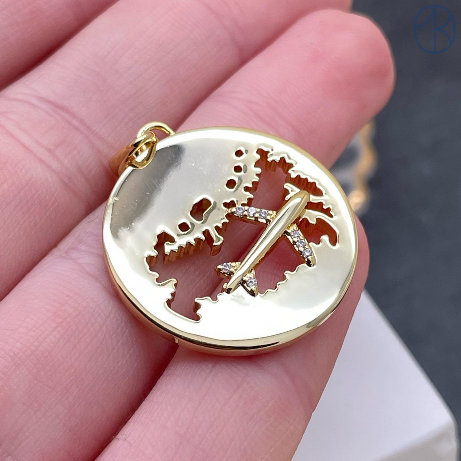 Подвеска самолет и земной шар цирконы, цвет золото 25 мм