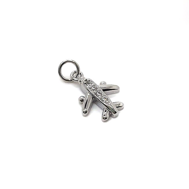 Подвеска самолет цирконы, цвет серебро 15х11 мм