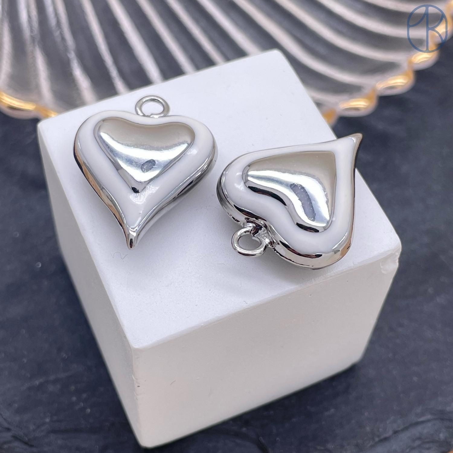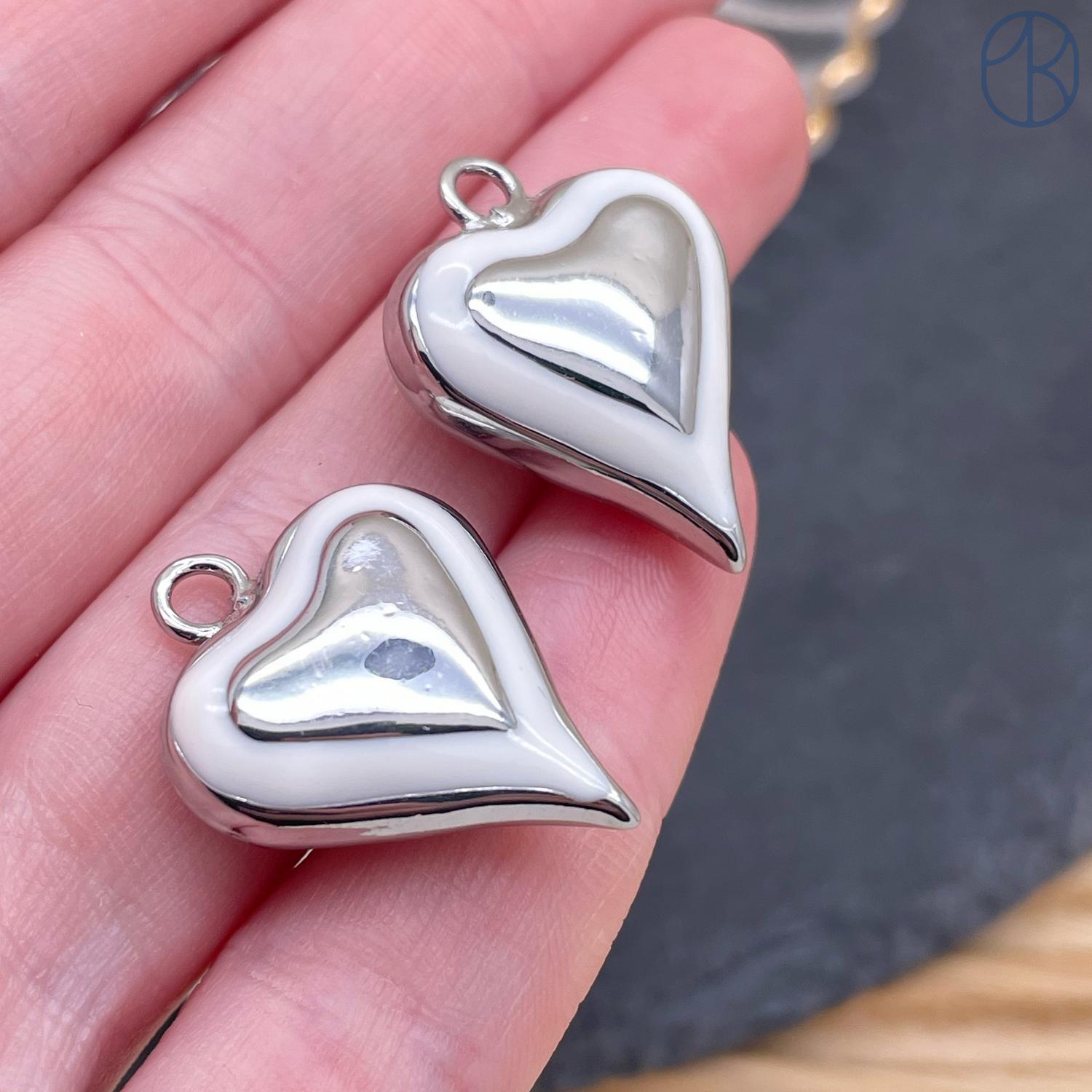 Подвеска сердце белая эмаль, цвет серебро 26х20 мм