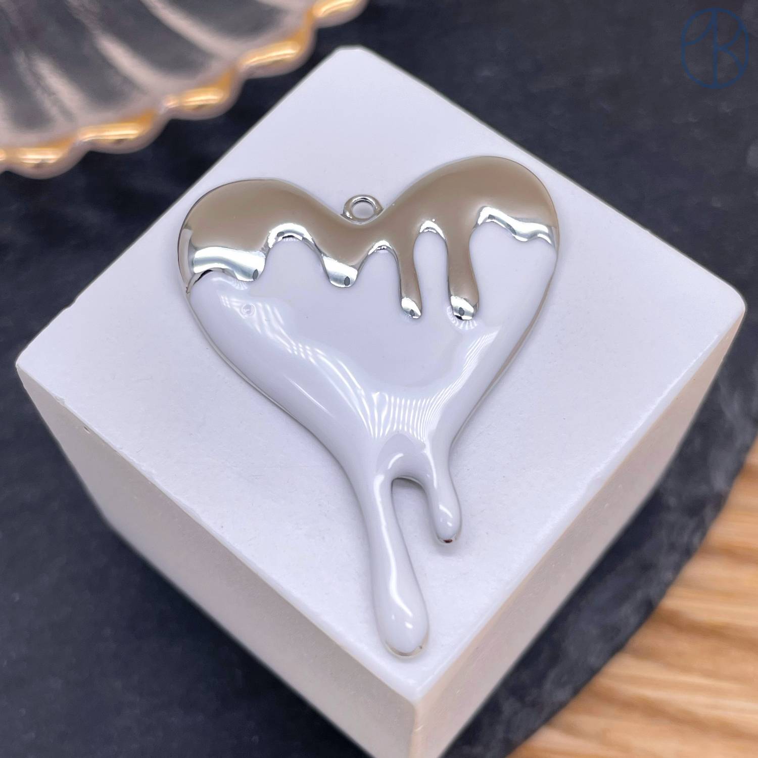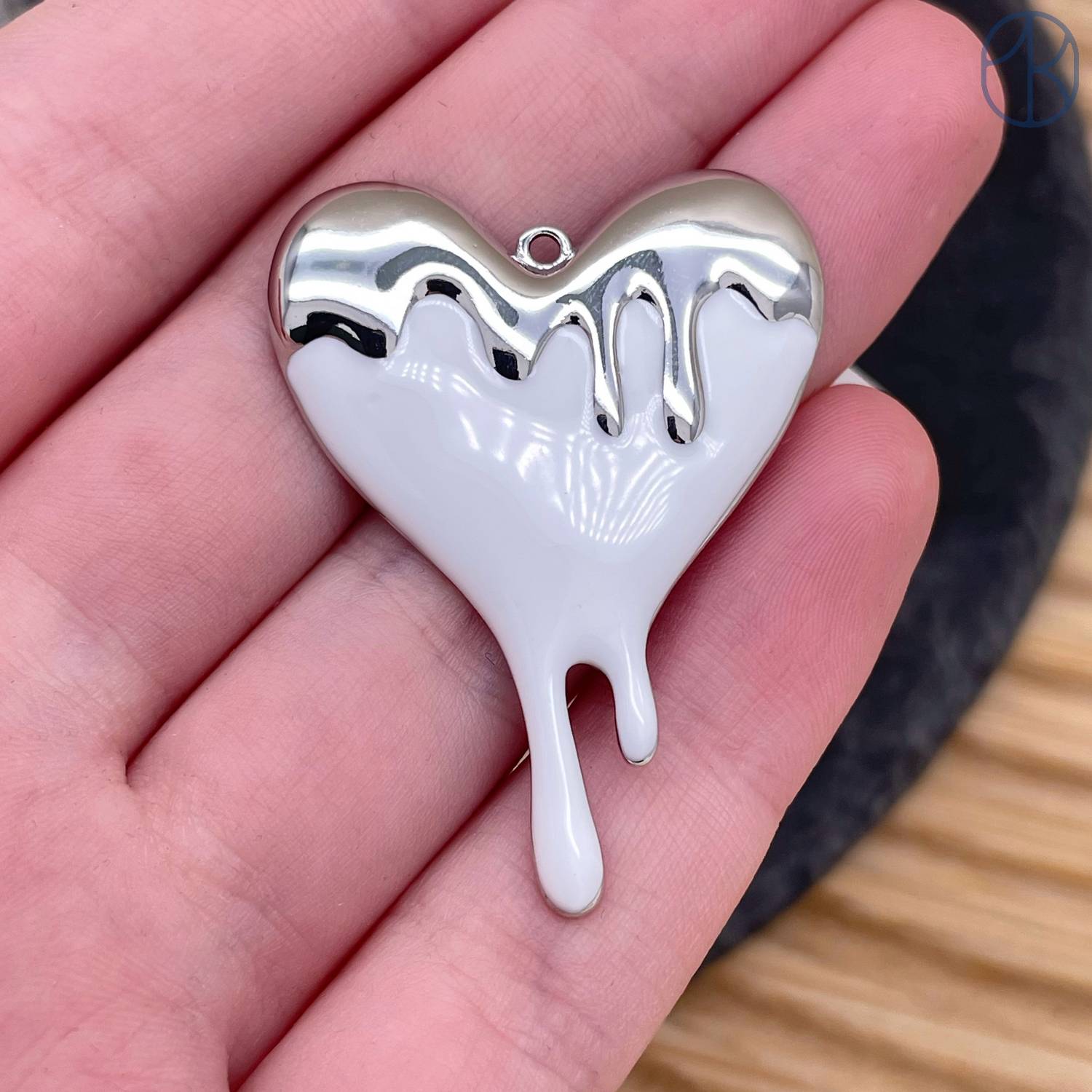 Подвеска сердце белая эмаль, цвет серебро 40 мм