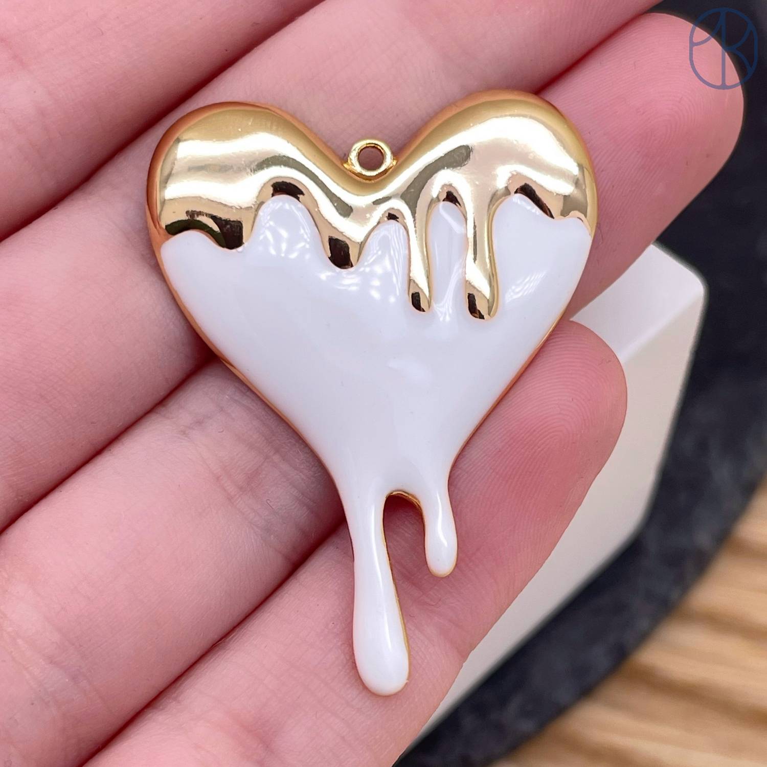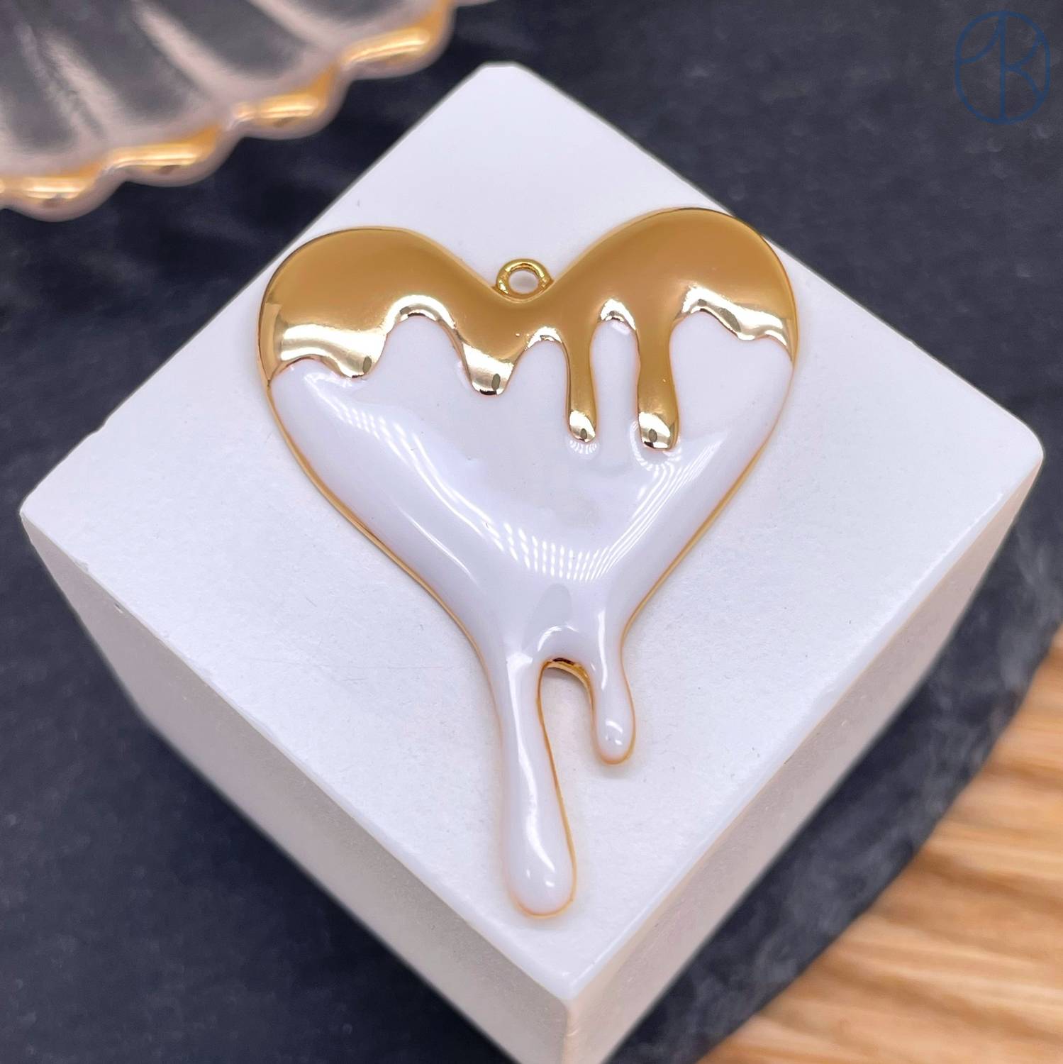 Подвеска сердце белая эмаль, цвет золото 40 мм