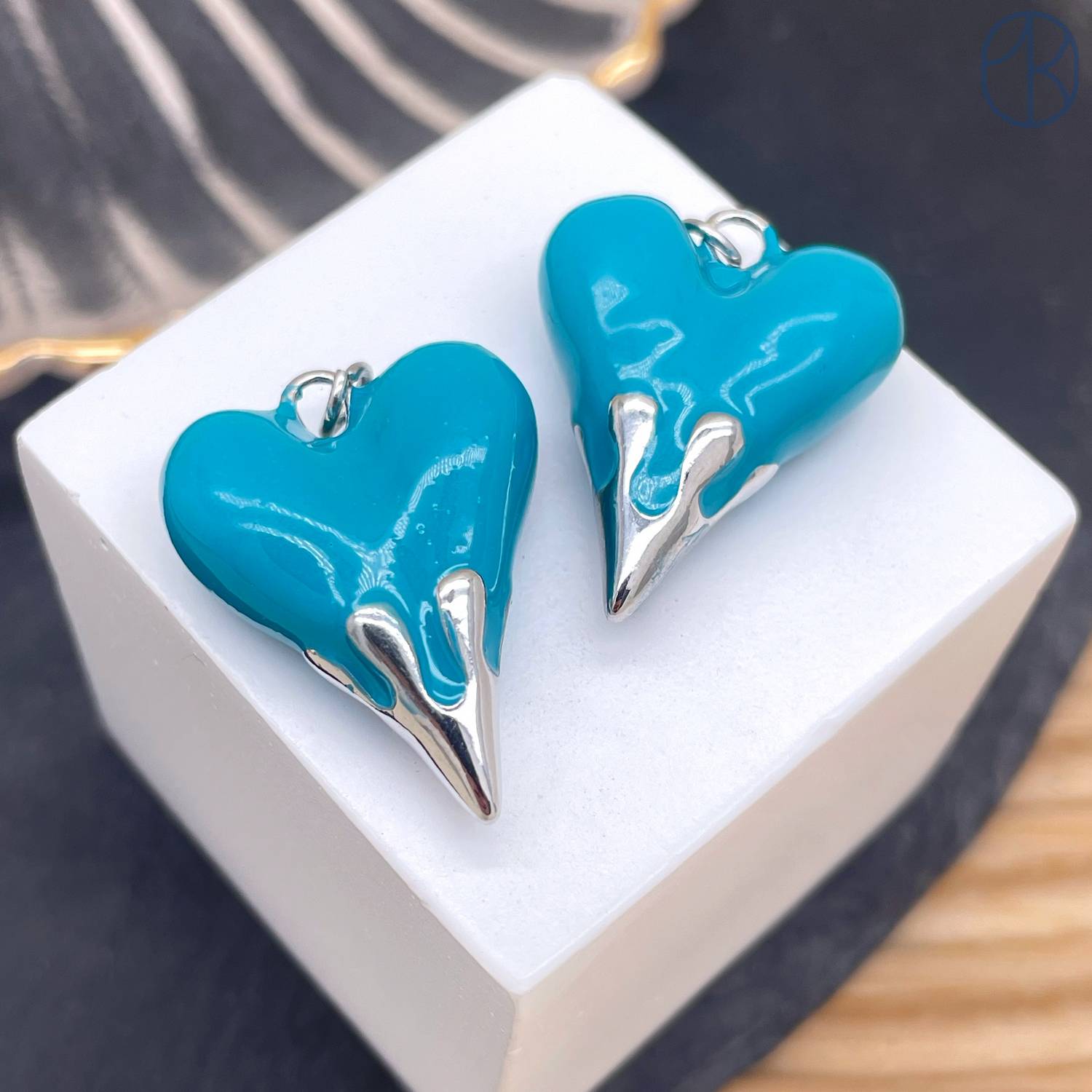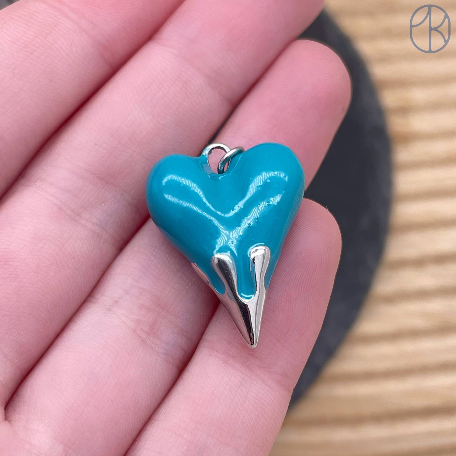 Подвеска сердце бирюзовая эмаль, цвет серебро 24х19 мм