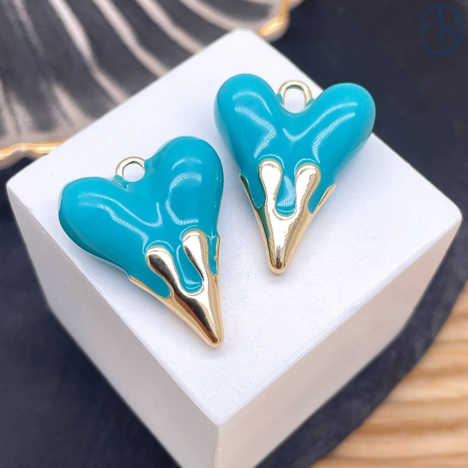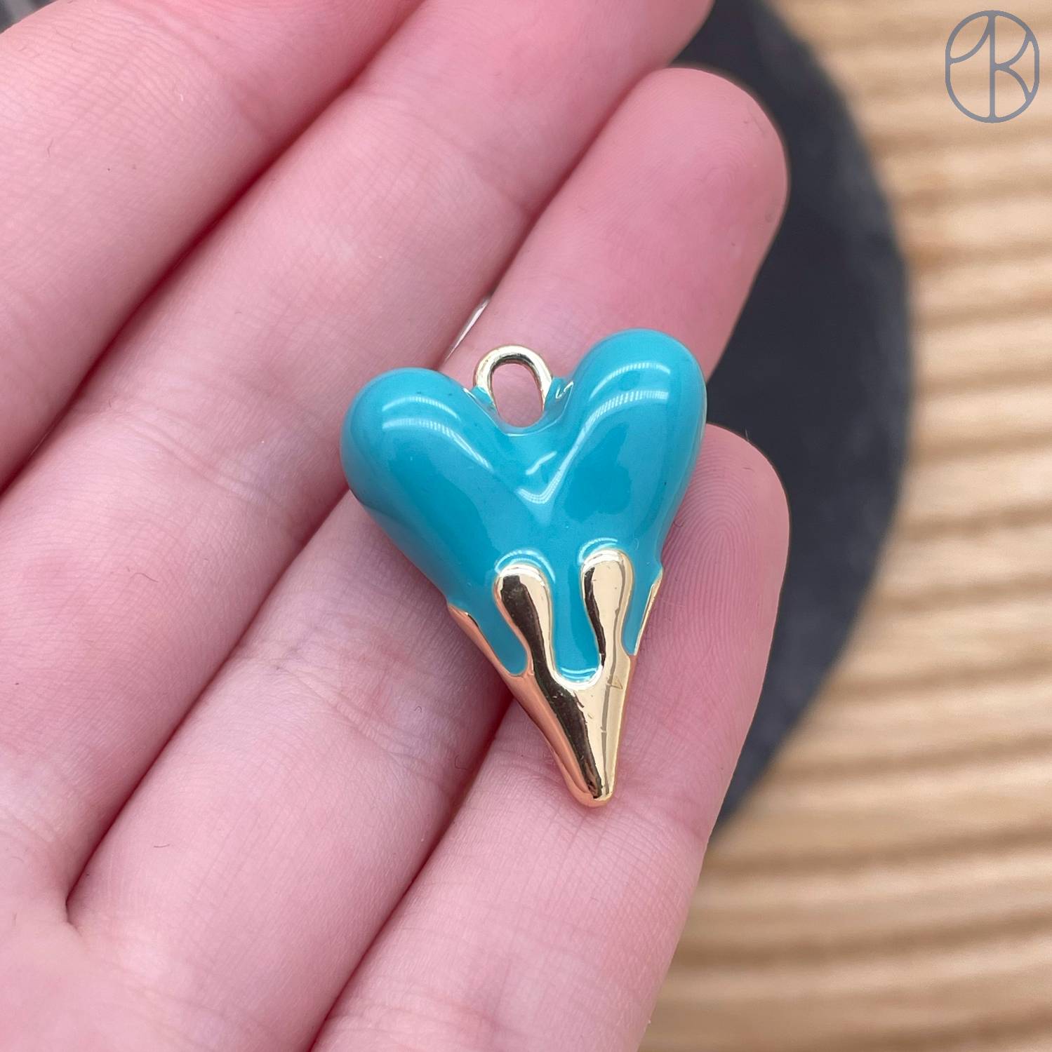 Подвеска сердце бирюзовая эмаль, цвет золото 24х19 мм