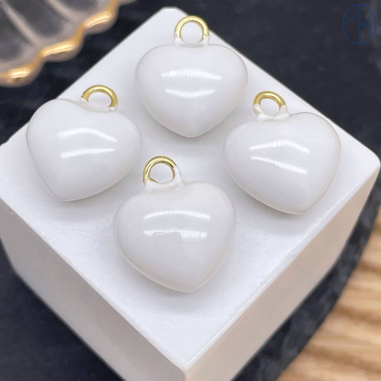 Подвеска сердце черная эмаль, цвет золото 14 мм