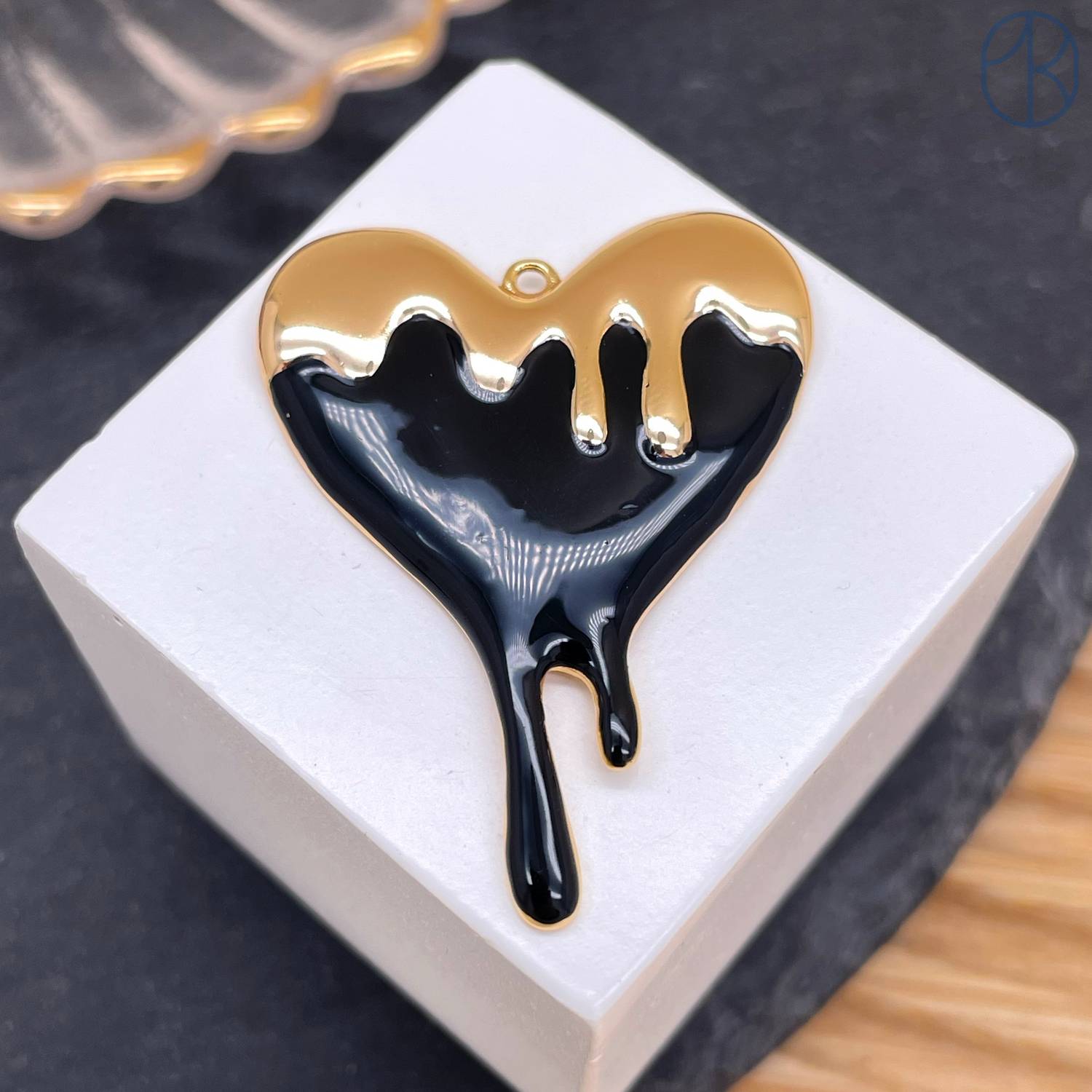 Подвеска сердце черная эмаль, цвет золото 40 мм
