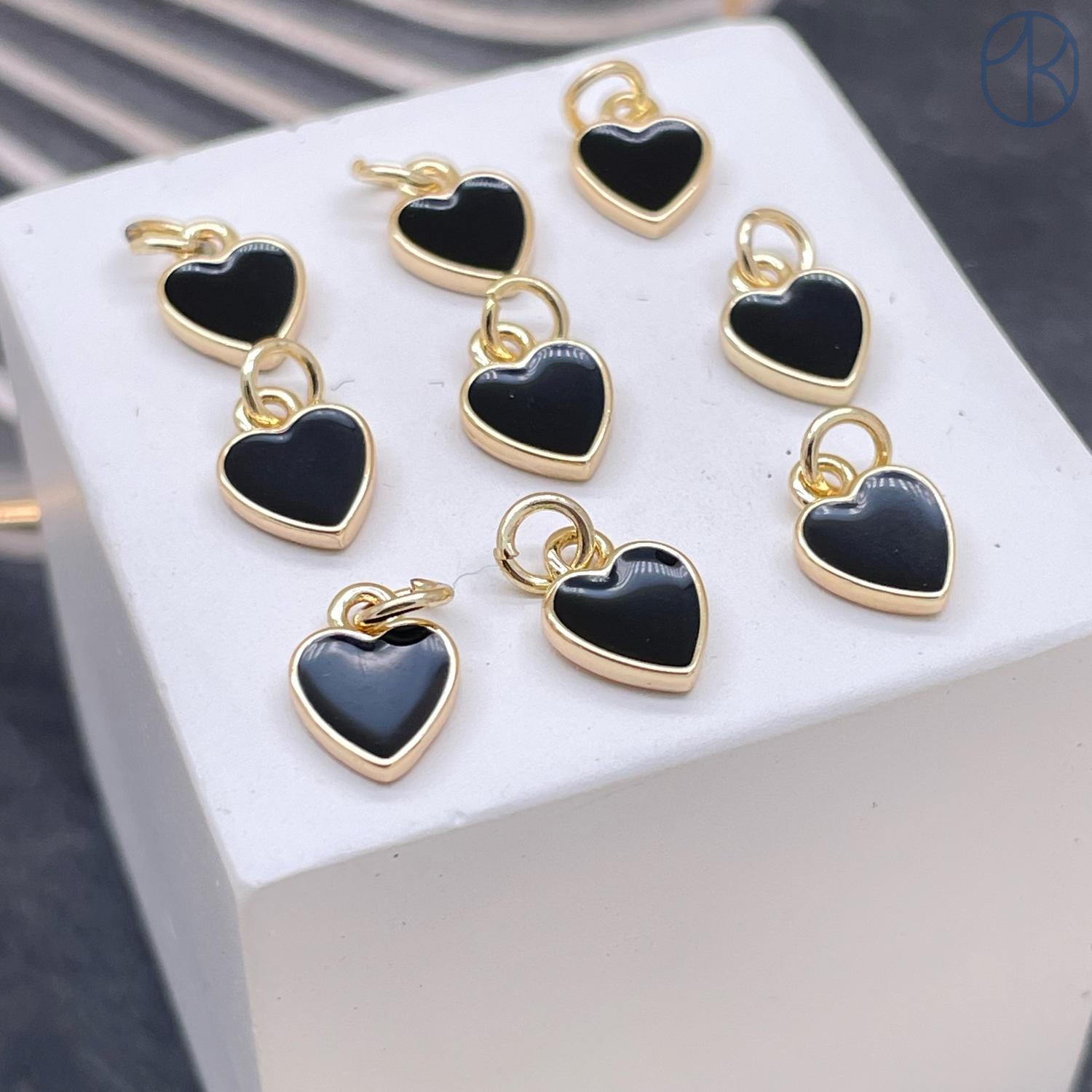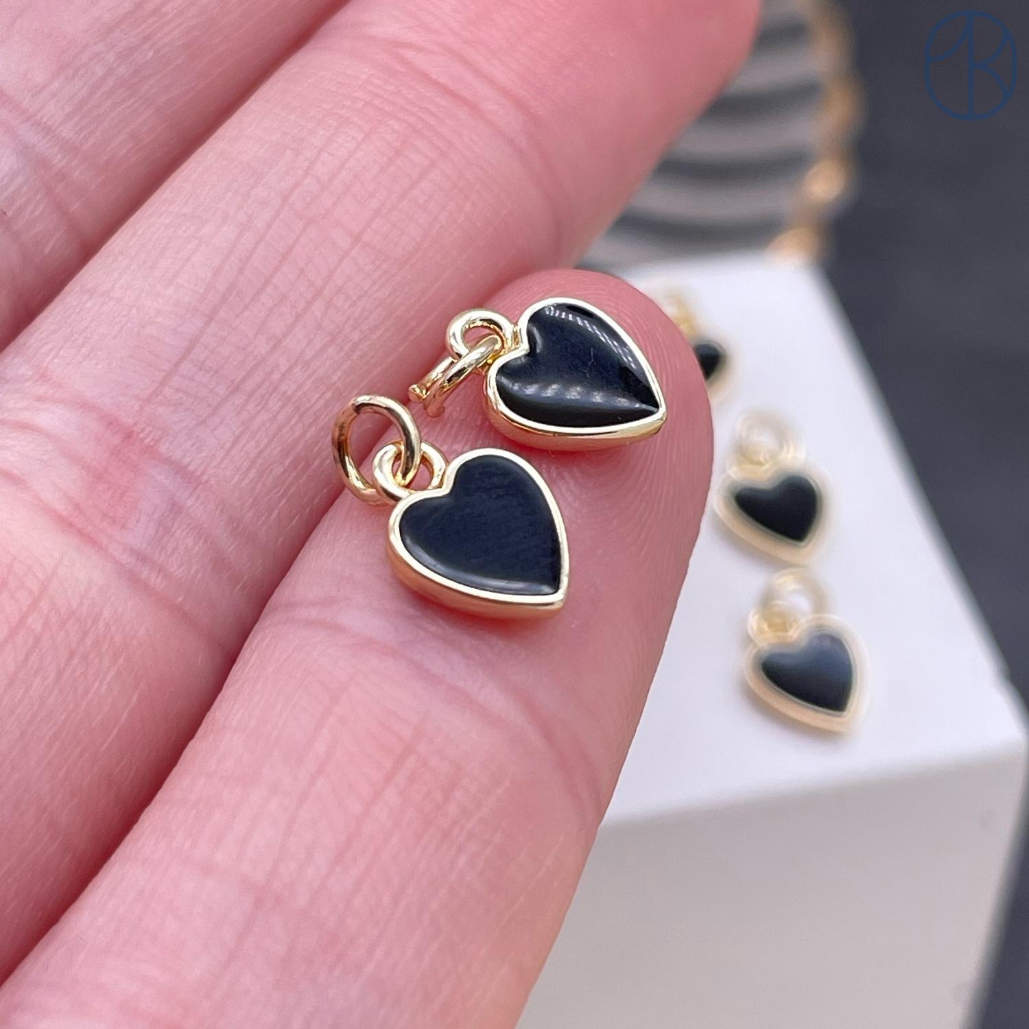 Подвеска сердце черная эмаль, цвет золото 9 мм