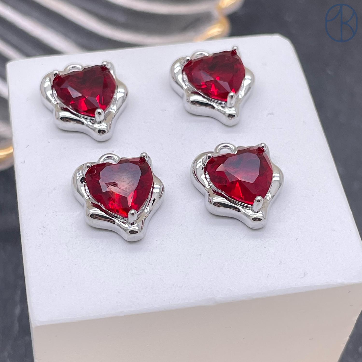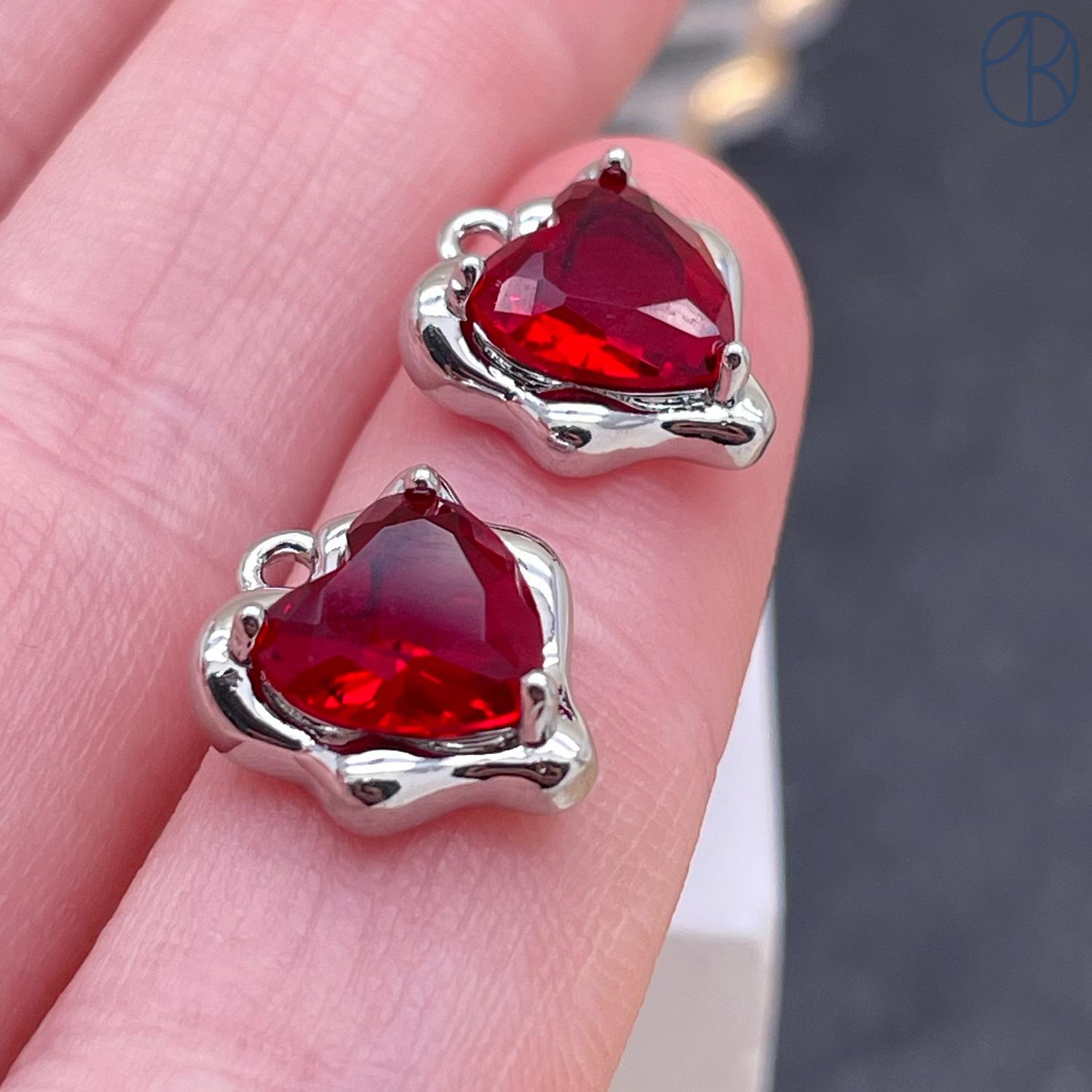 Подвеска сердце фриформ красный циркон, цвет серебро 11х13 мм