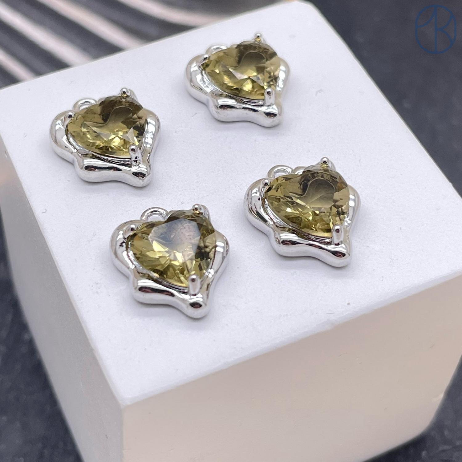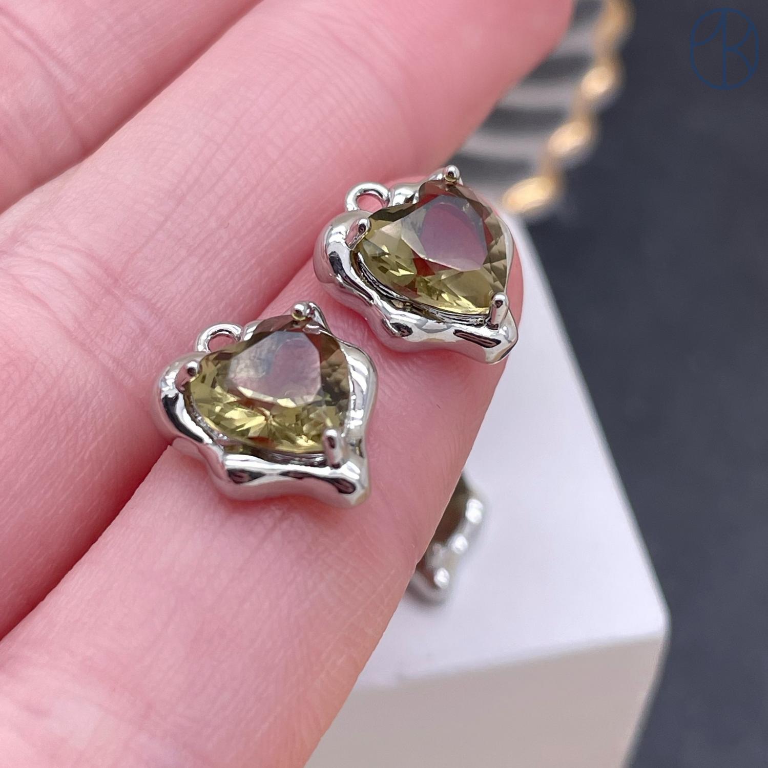 Подвеска сердце фриформ темно-зеленый циркон, цвет серебро 11х13 мм