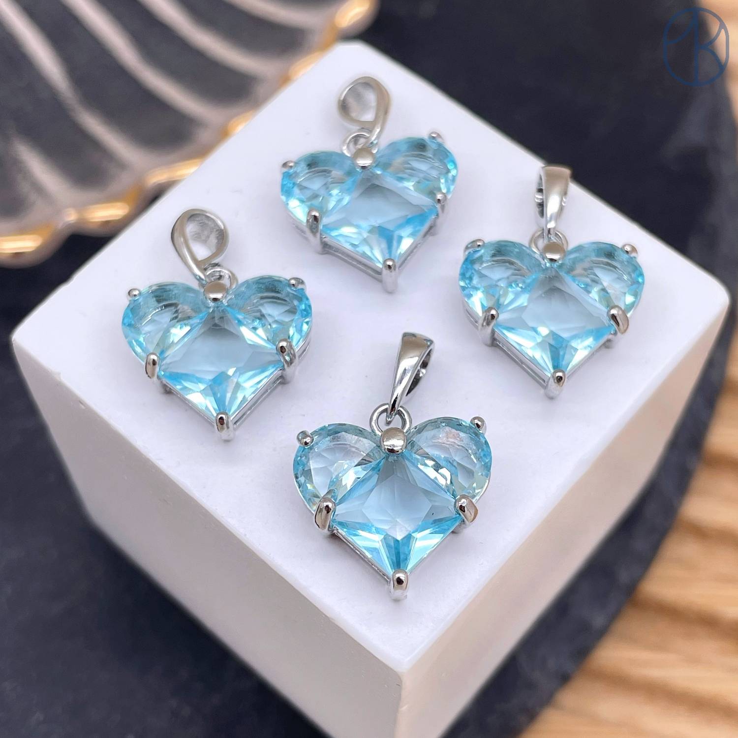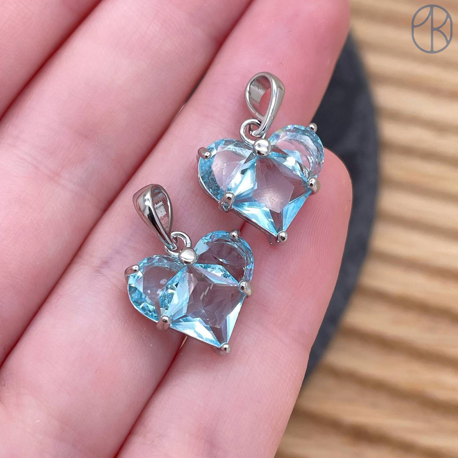 Подвеска сердце голубые цирконы, цвет серебро 14,5х14 мм