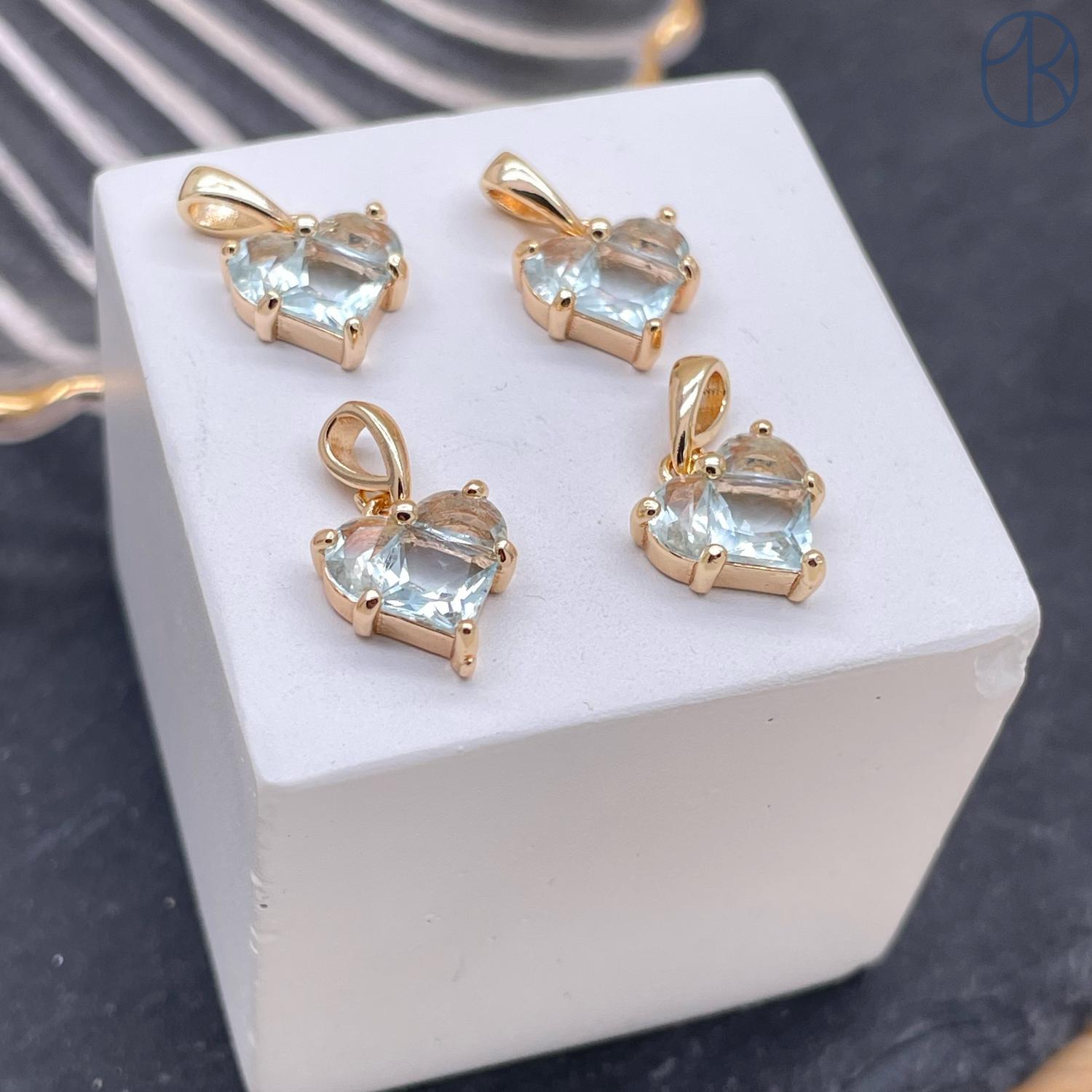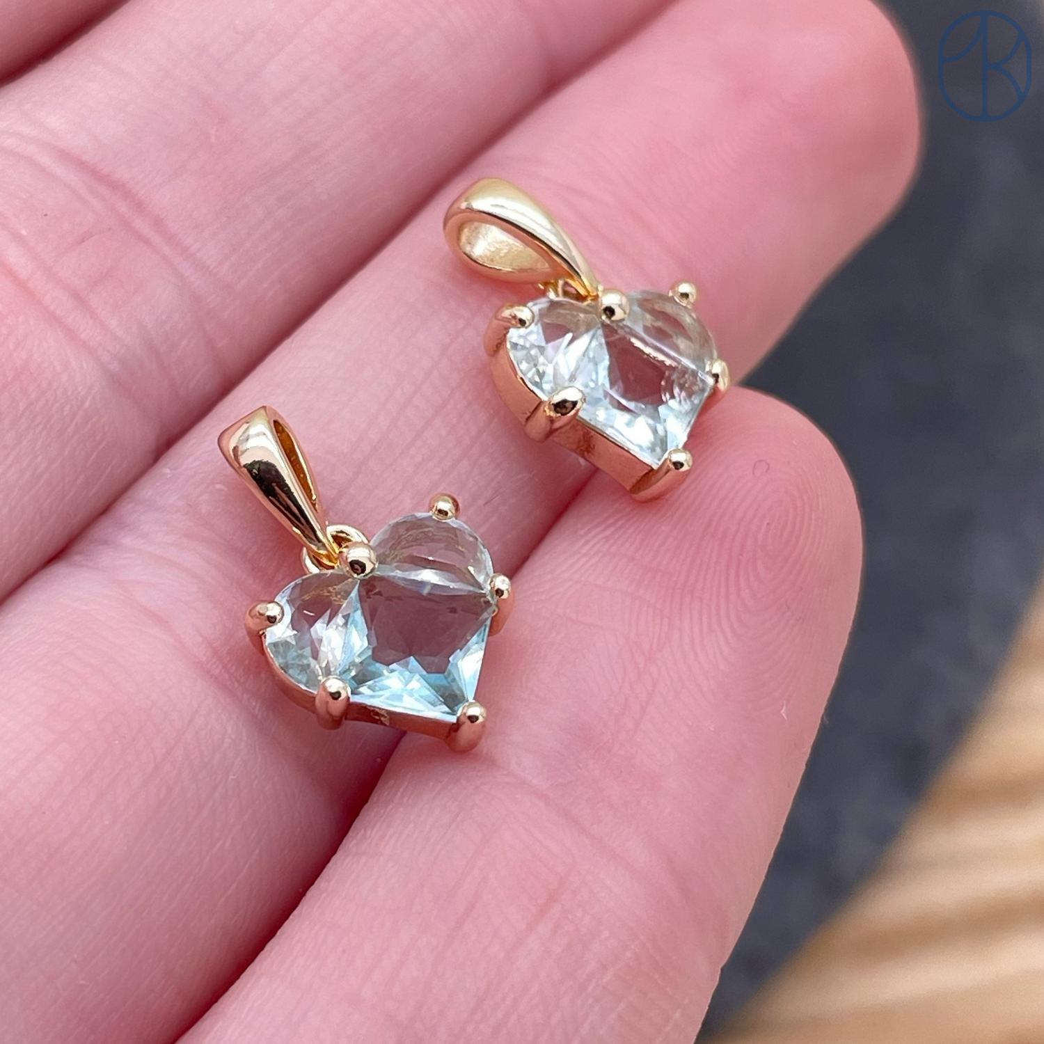 Подвеска Сердце голубые цирконы, цвет золото 10х11 мм