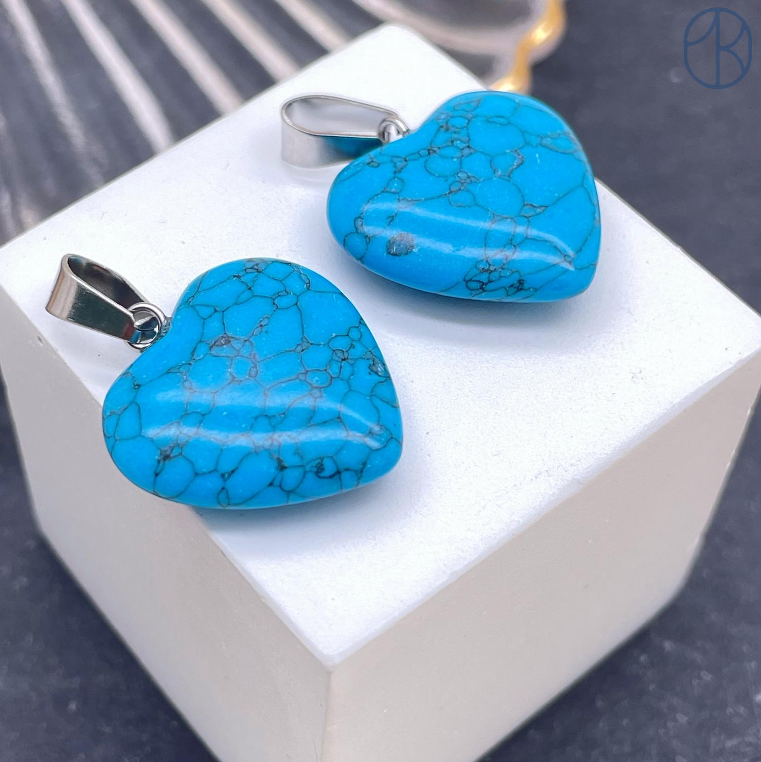 Подвеска Сердце Говлит голубой , цвет серебро 20х20 мм