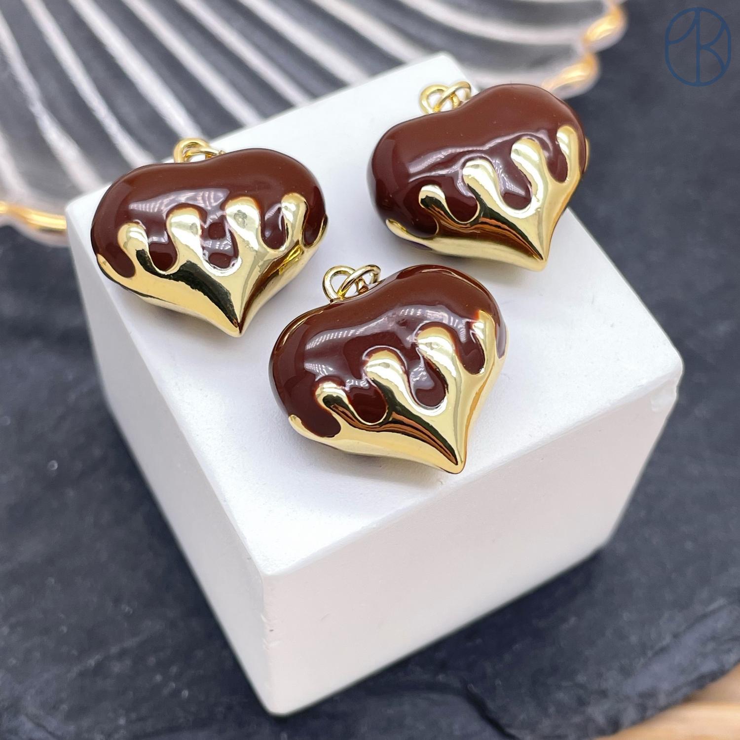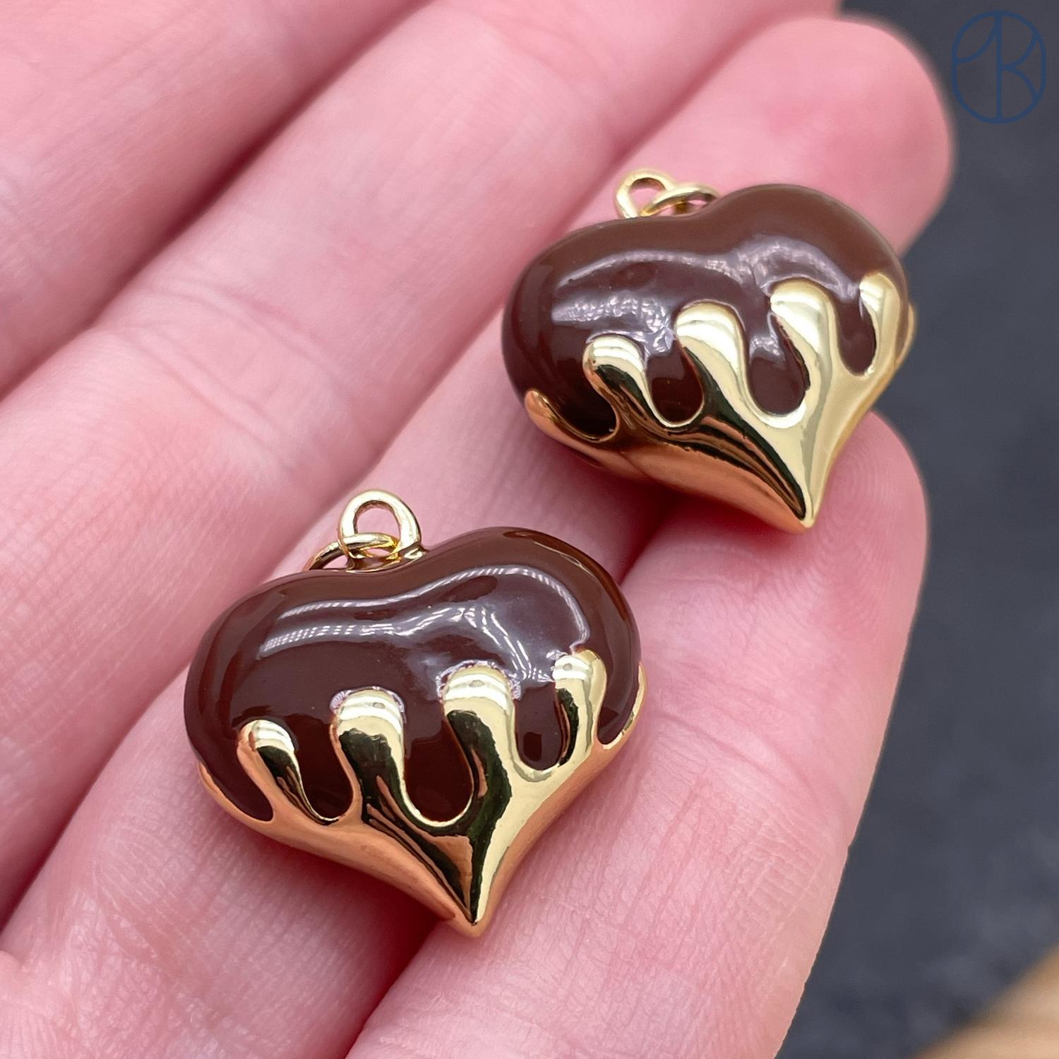 Подвеска сердце коричневая эмаль, цвет золото 20х19 мм
