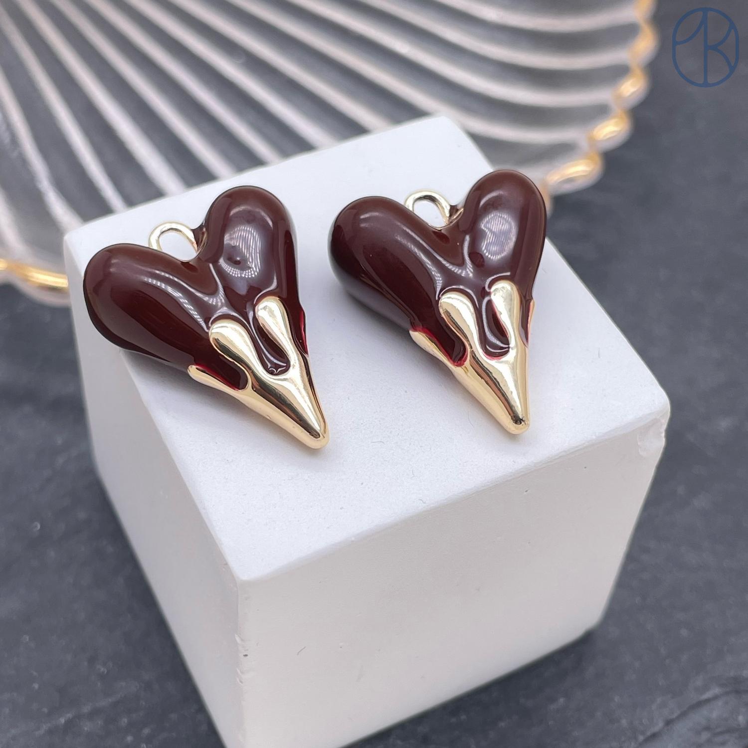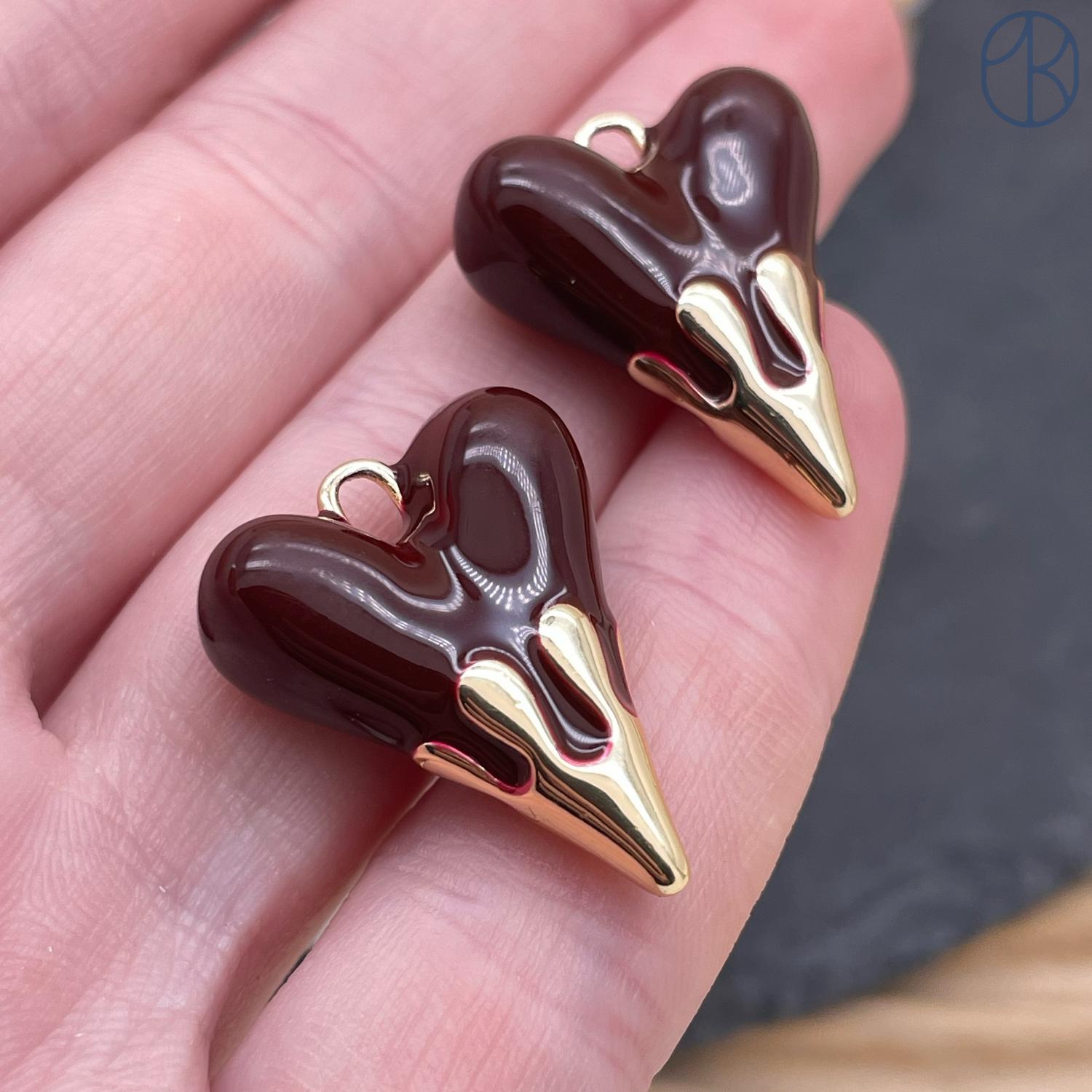 Подвеска сердце коричневая эмаль, цвет золото 24х19 мм